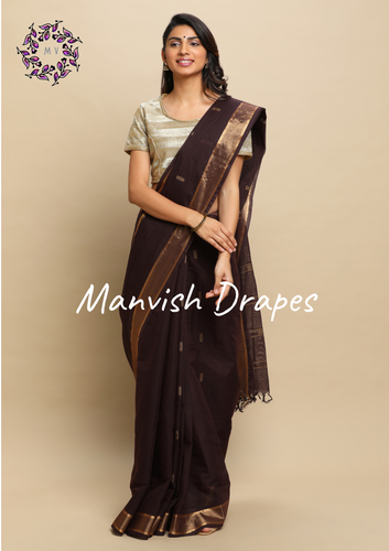 Kanchi Cotton Sarees with Buttas all over and Zari Tissue Borders on both sides (COFFEE)