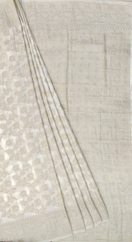 Banaras Chinnon Crepe Saree with Self Colored Border,Pallu and Blouse.
