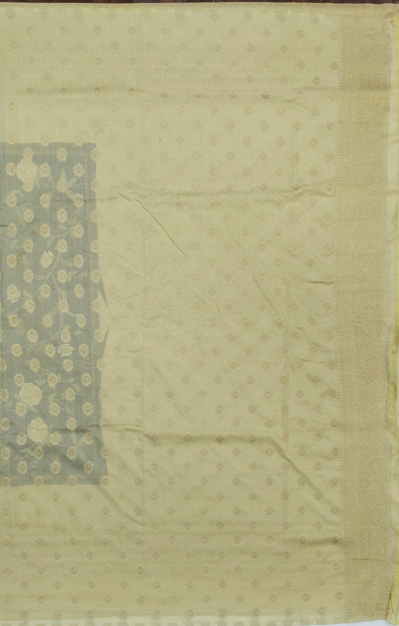 Elevate your ensemble with this Banaras Crepe Saree, exquisitely adorned with delicate Kashmiri thread work. The contrasting border and pallu add a refined touch of elegance, while the intricately designed butti blouse completes the sophisticated look. Perfect for special occasions, this saree blends traditional craftsmanship with timeless style.