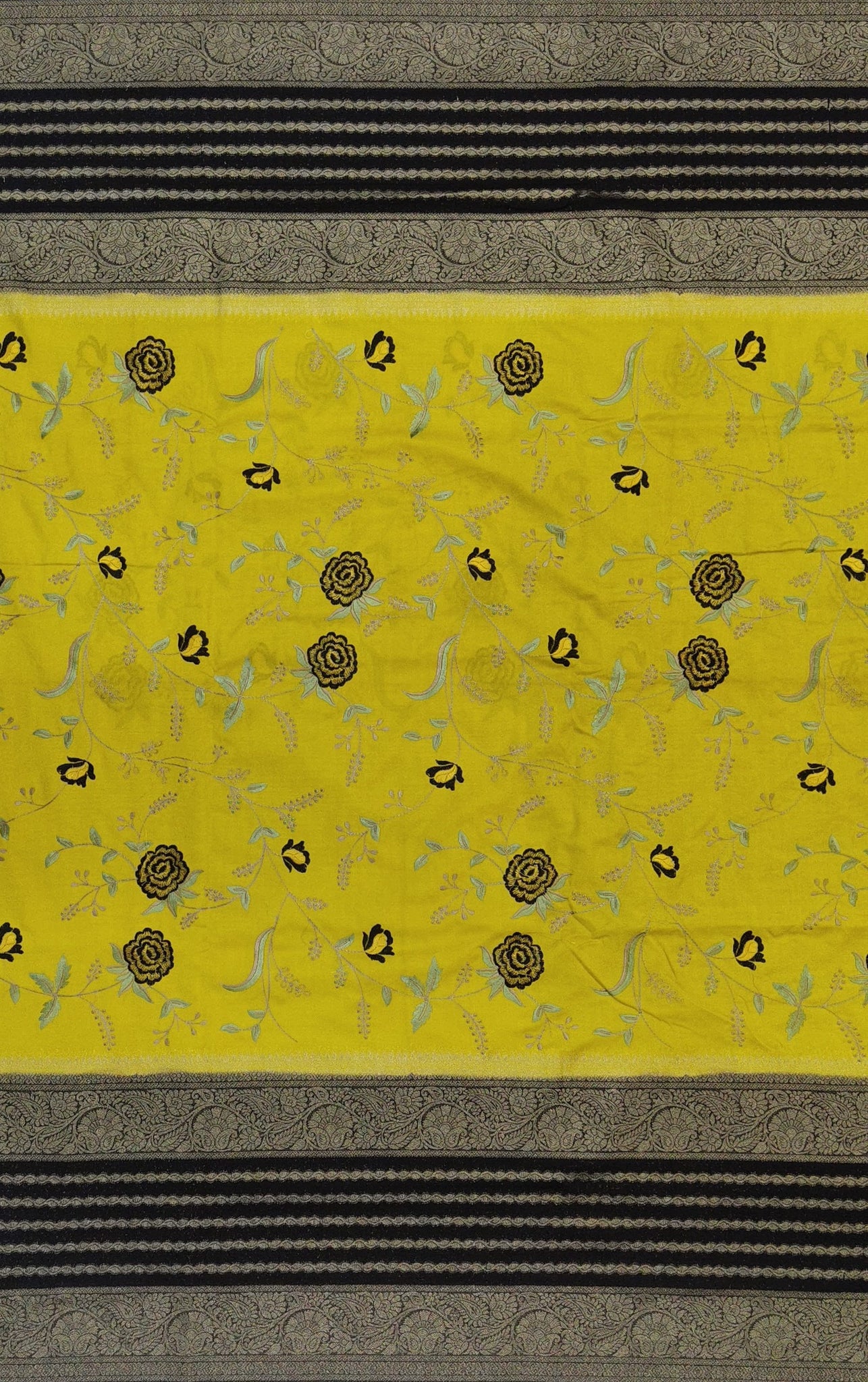 Banaras Crepe Saree with Kashmiri Thread work with Contrast Border,Pallu and Butti Blouse(Mustard-Black combination) (Copy)