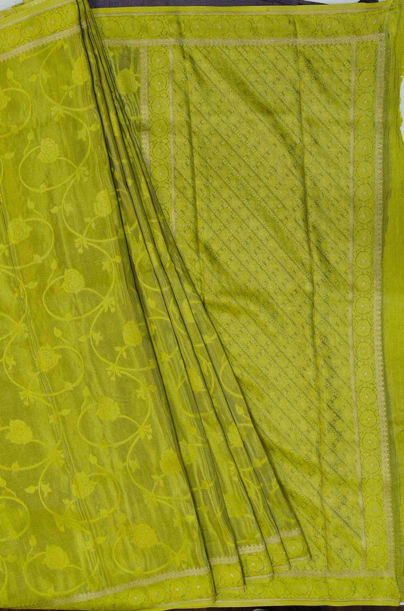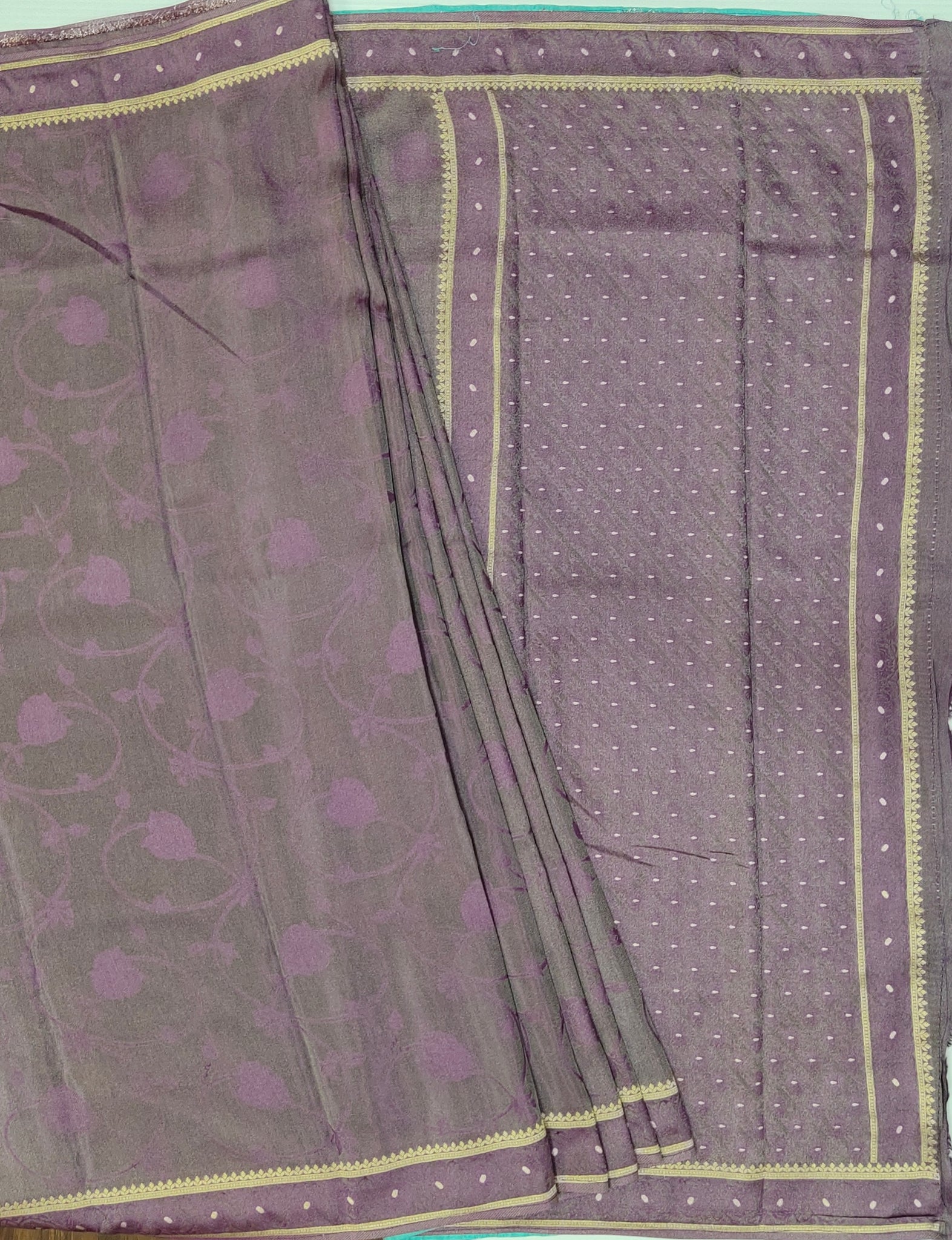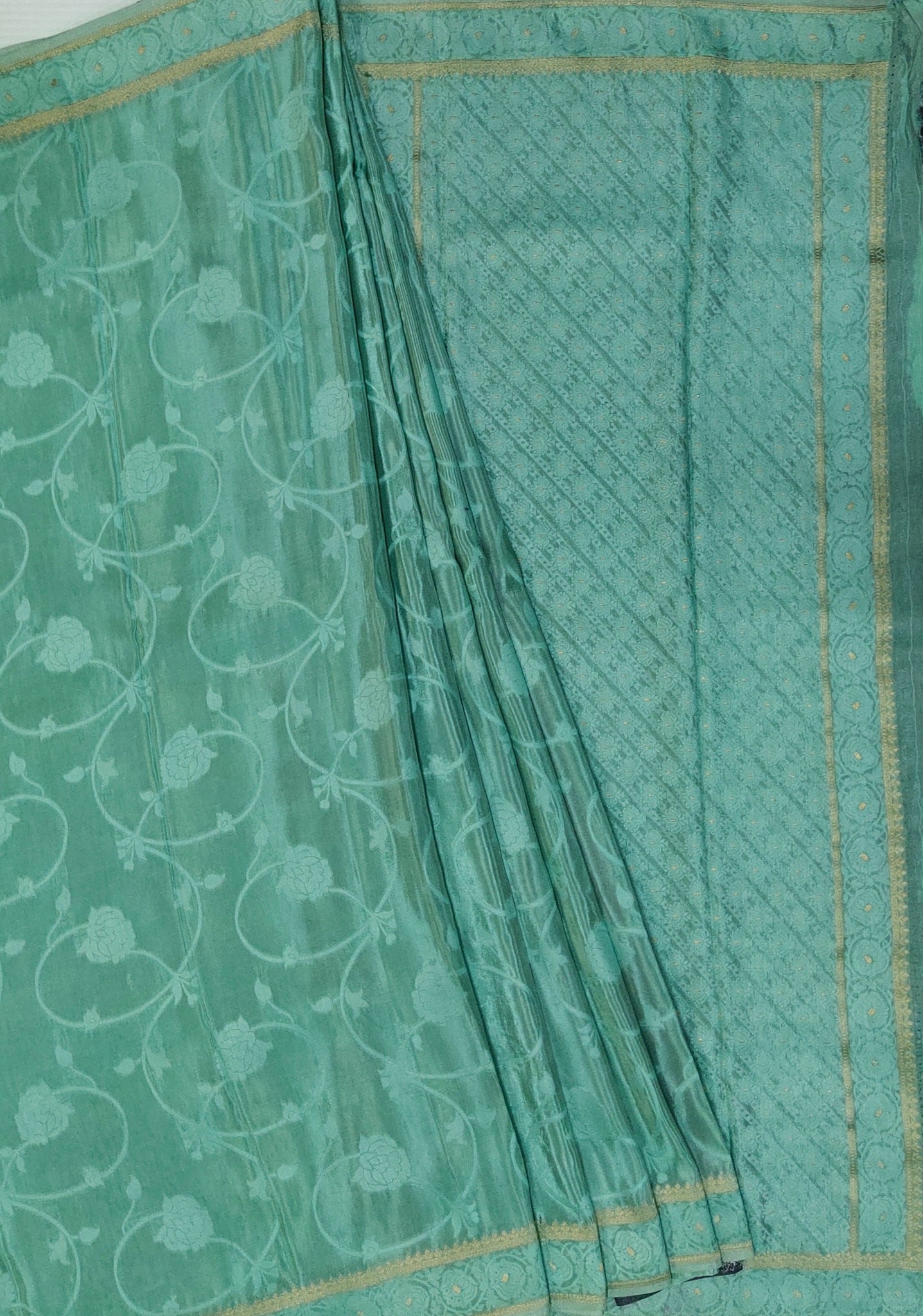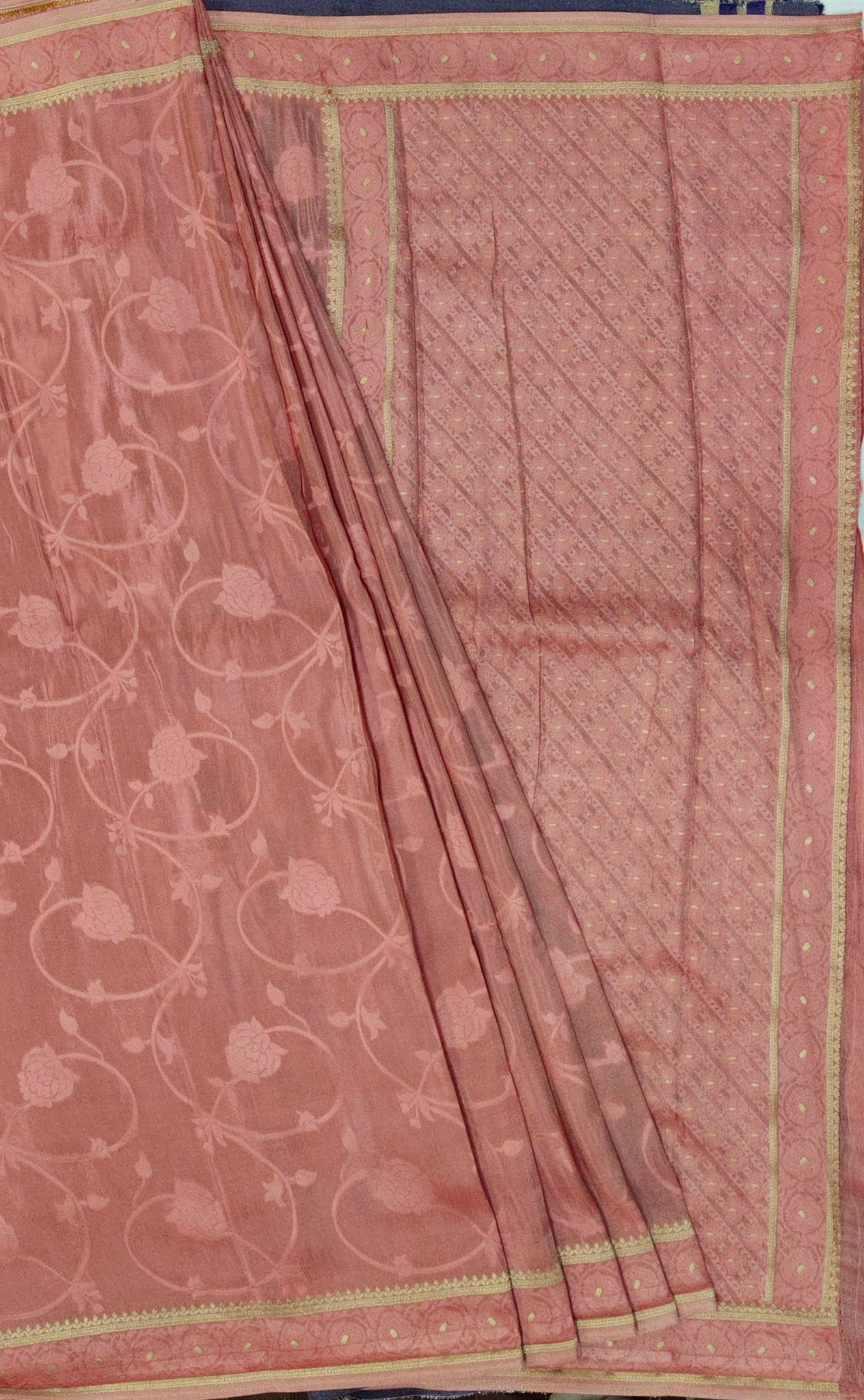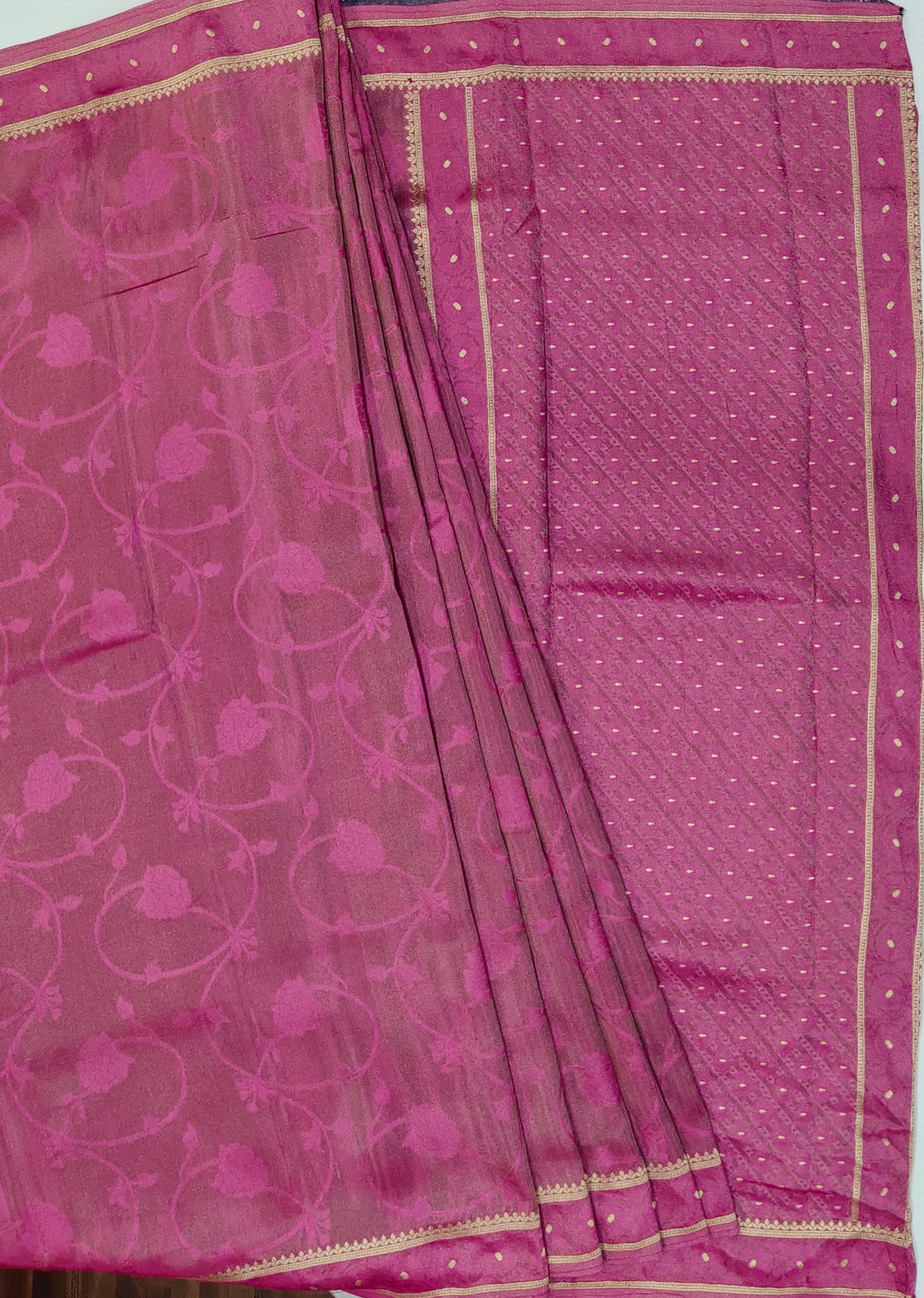 Banaras Crepe Saree with Shimmer Body and Contrast Blouse.