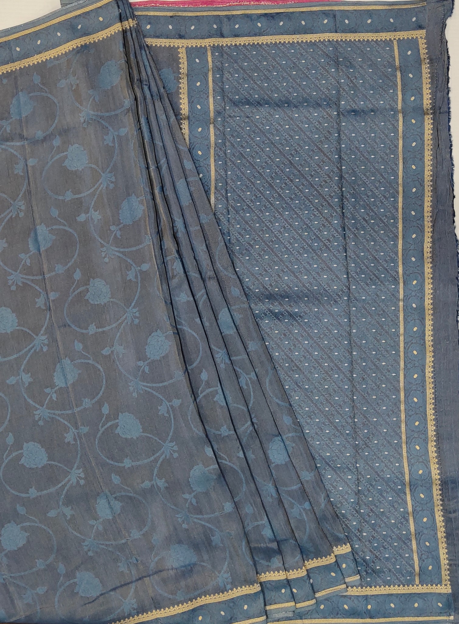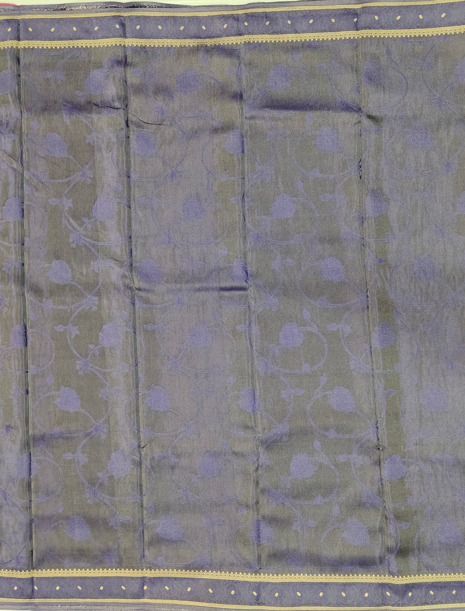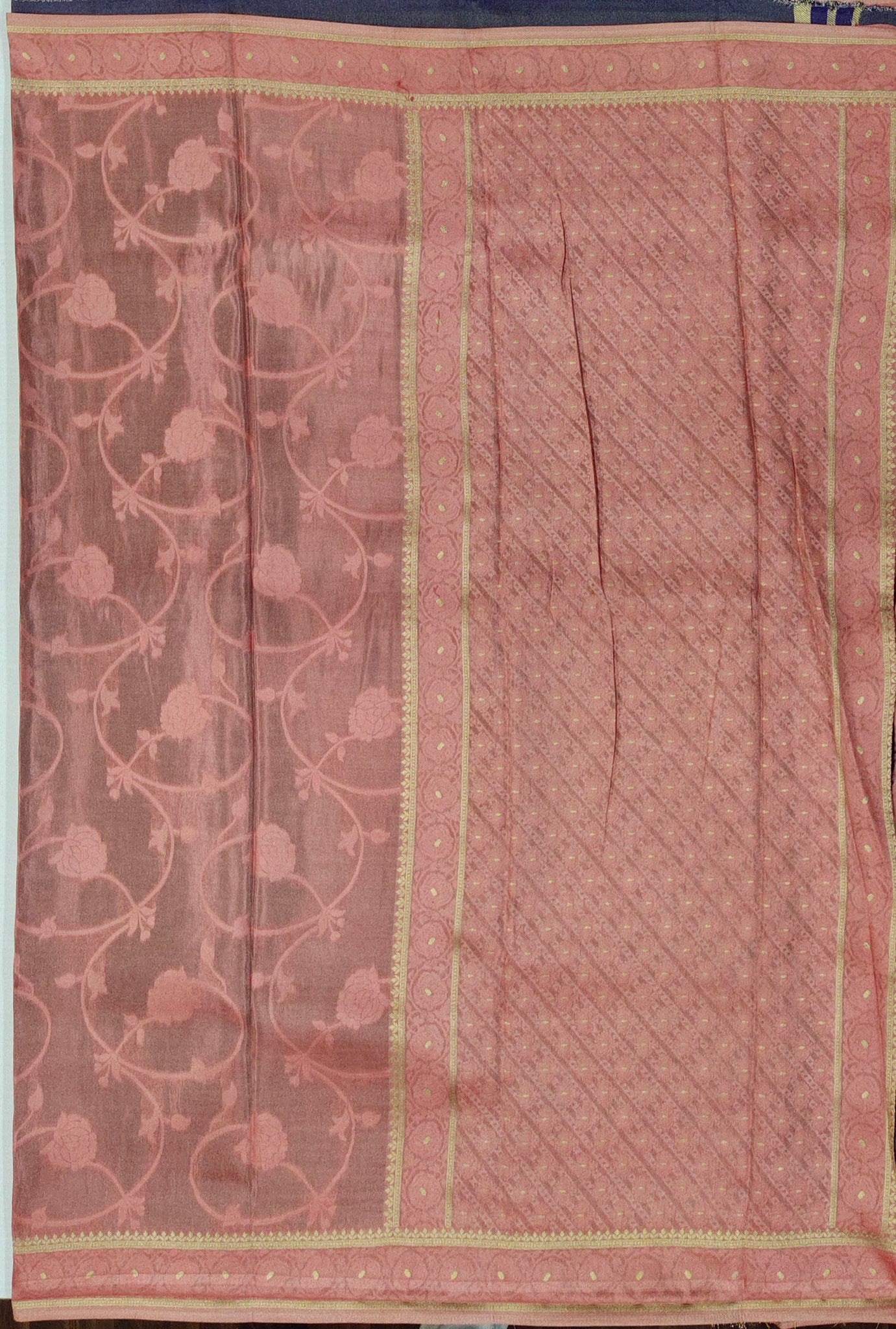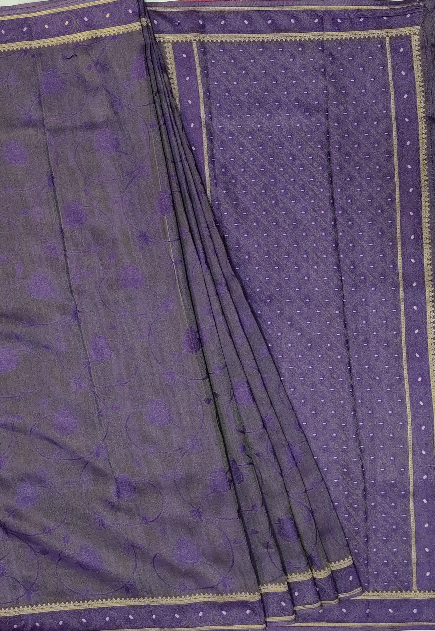 Banaras Crepe Saree with Shimmer Body and Contrast Blouse.