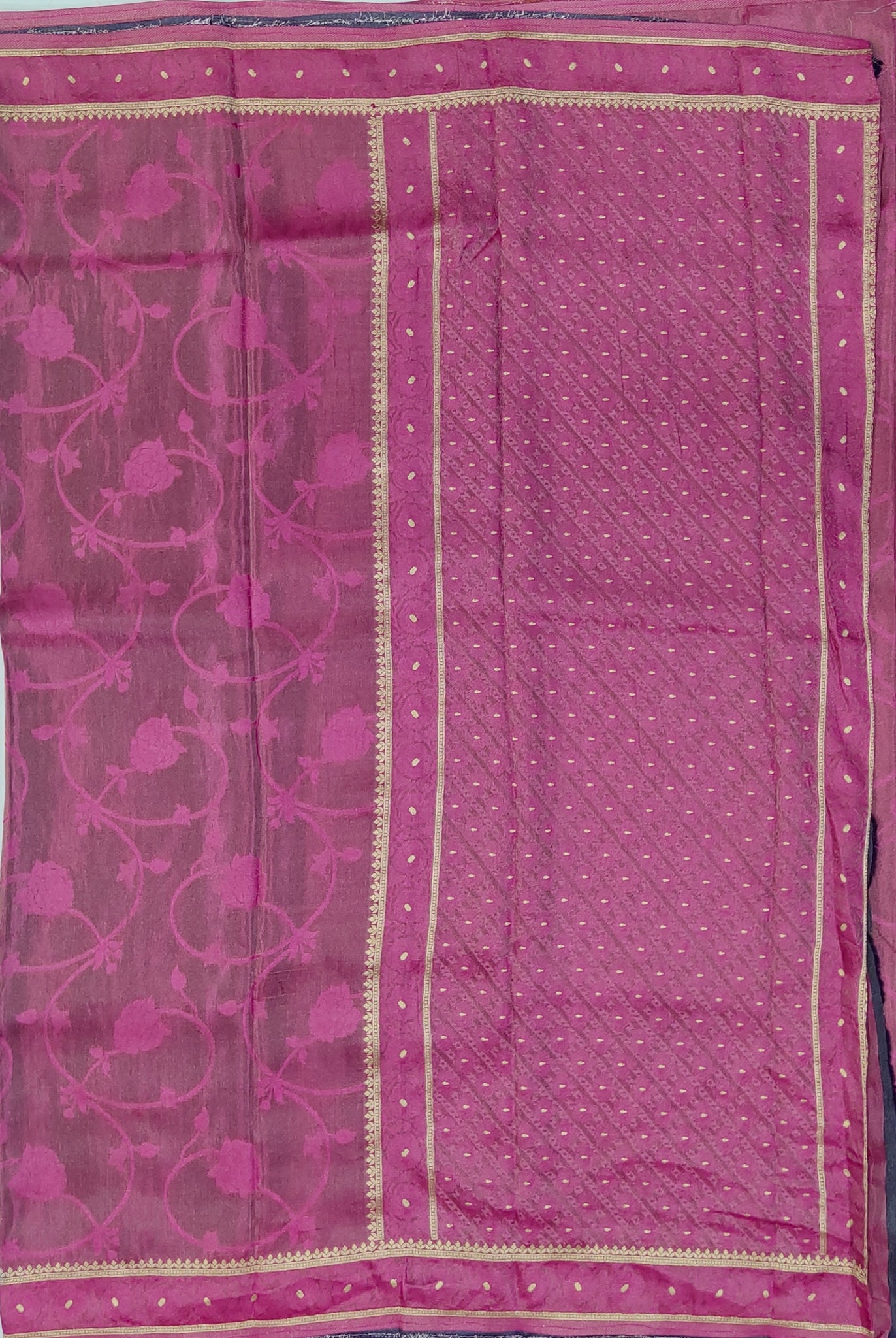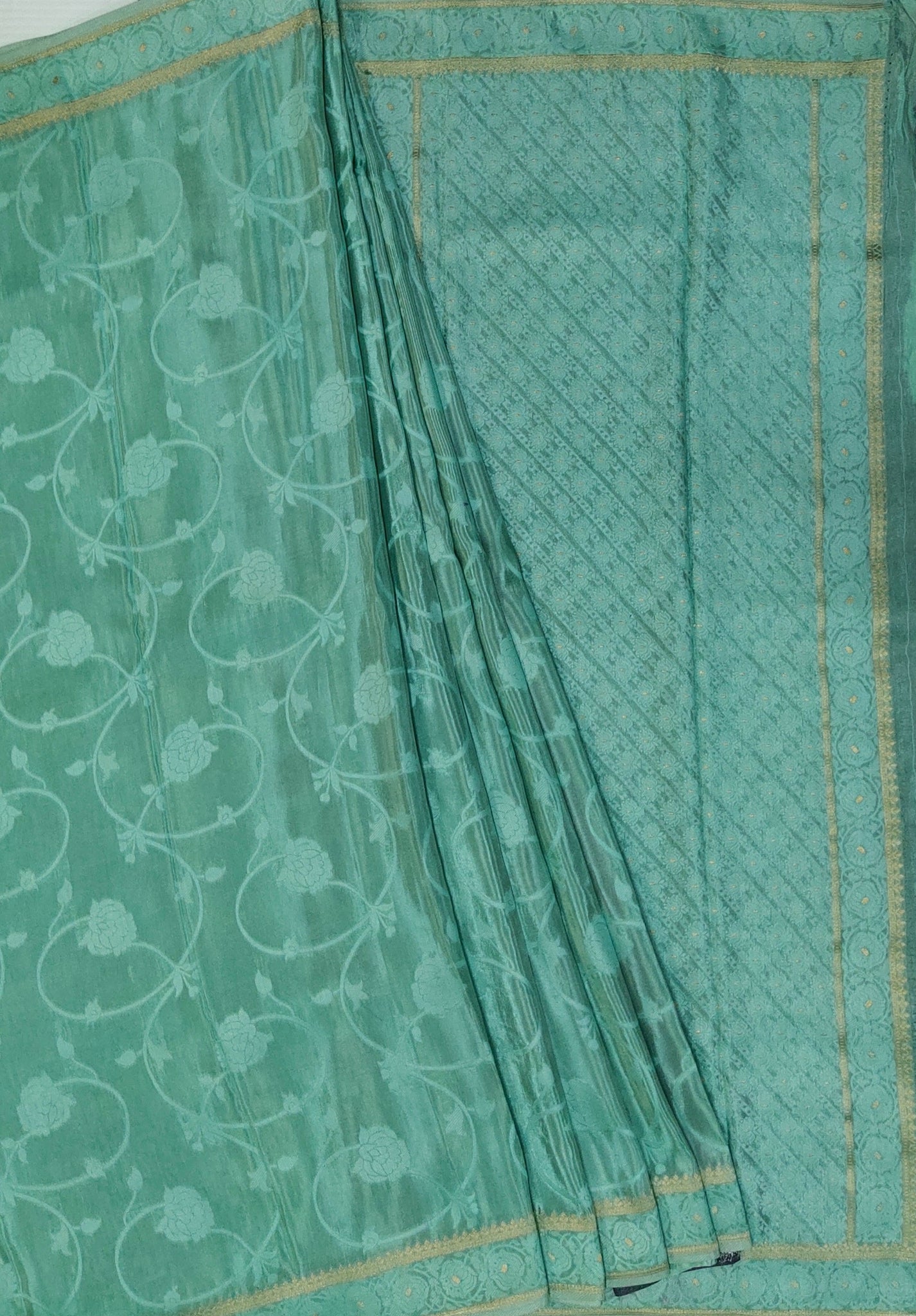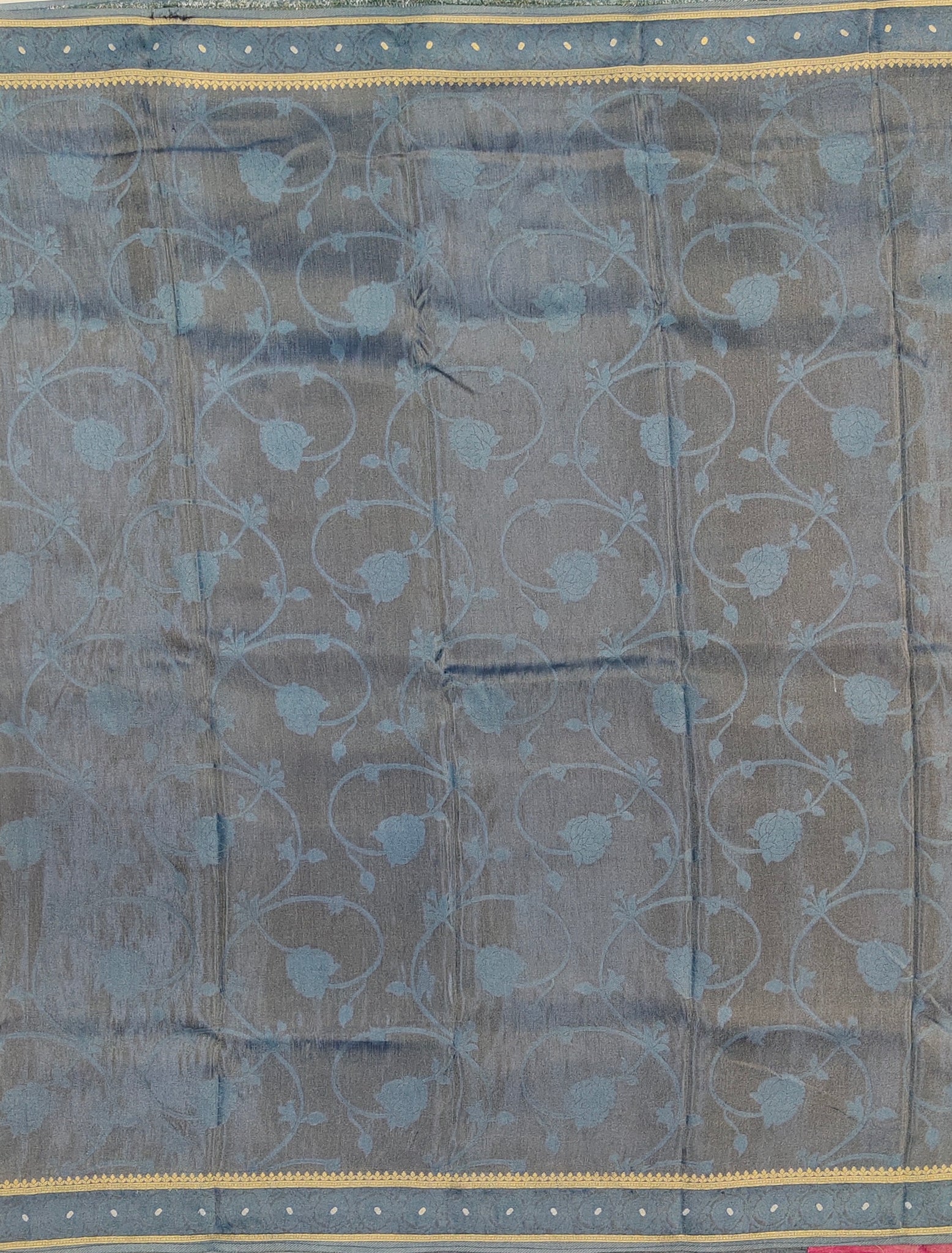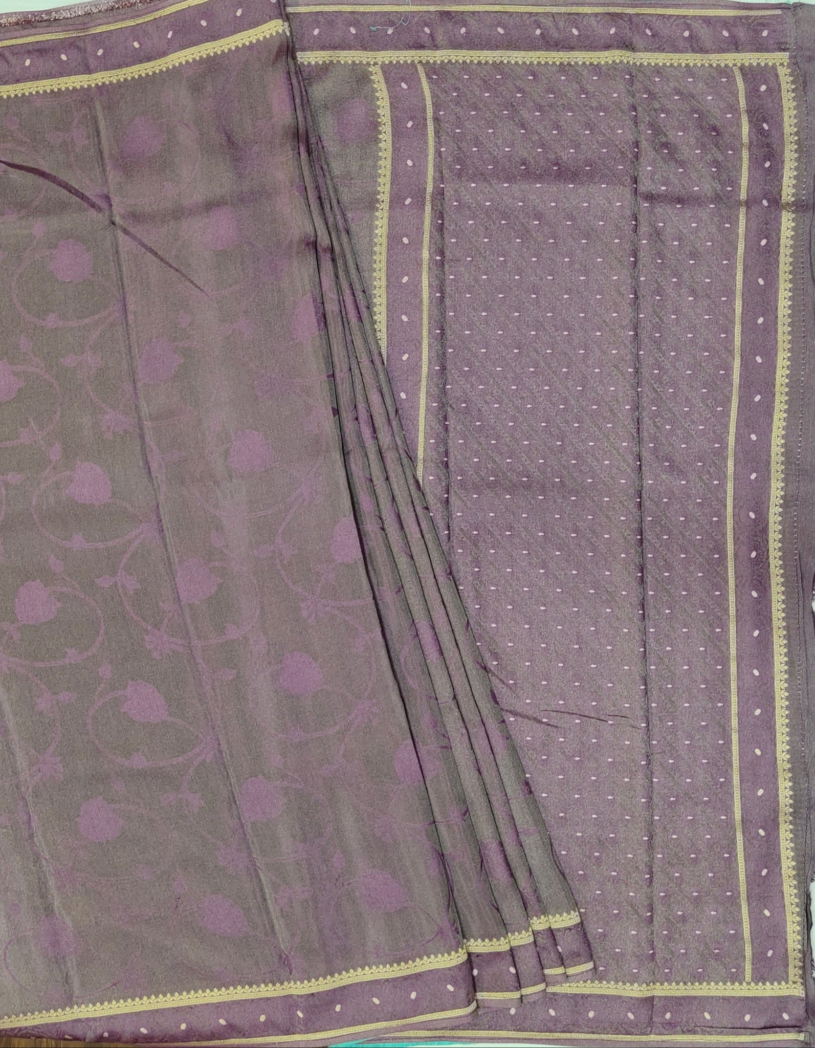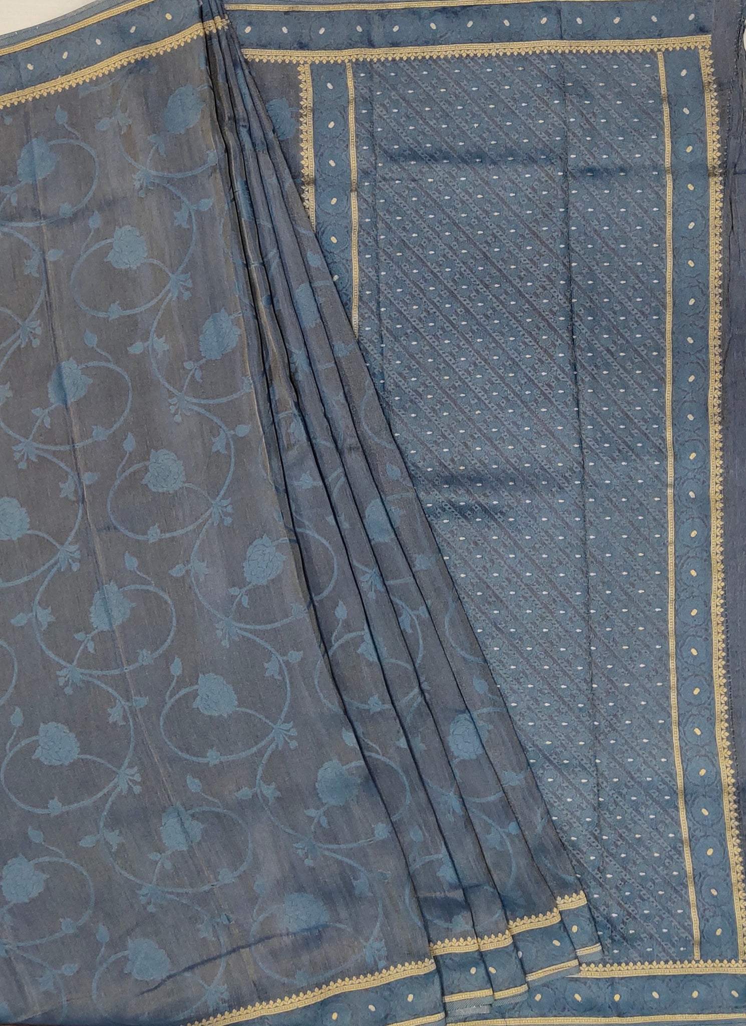 Banaras Crepe Saree with Shimmer Body and Contrast Blouse.