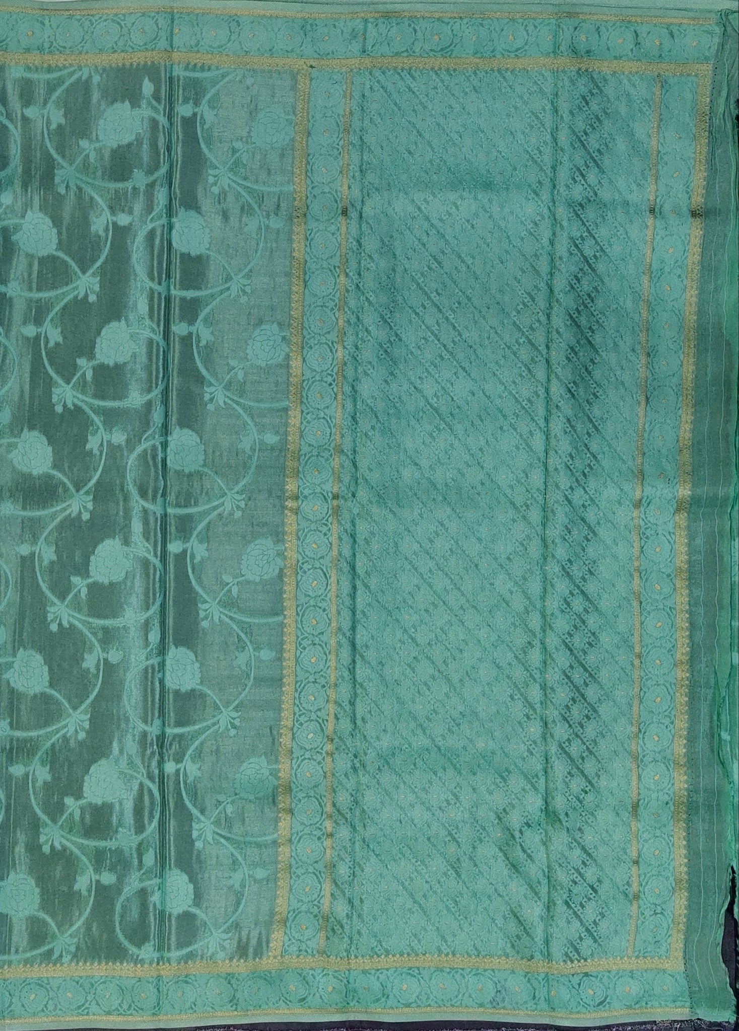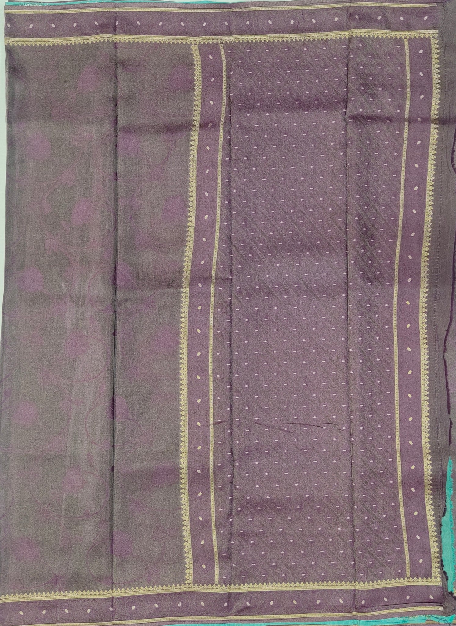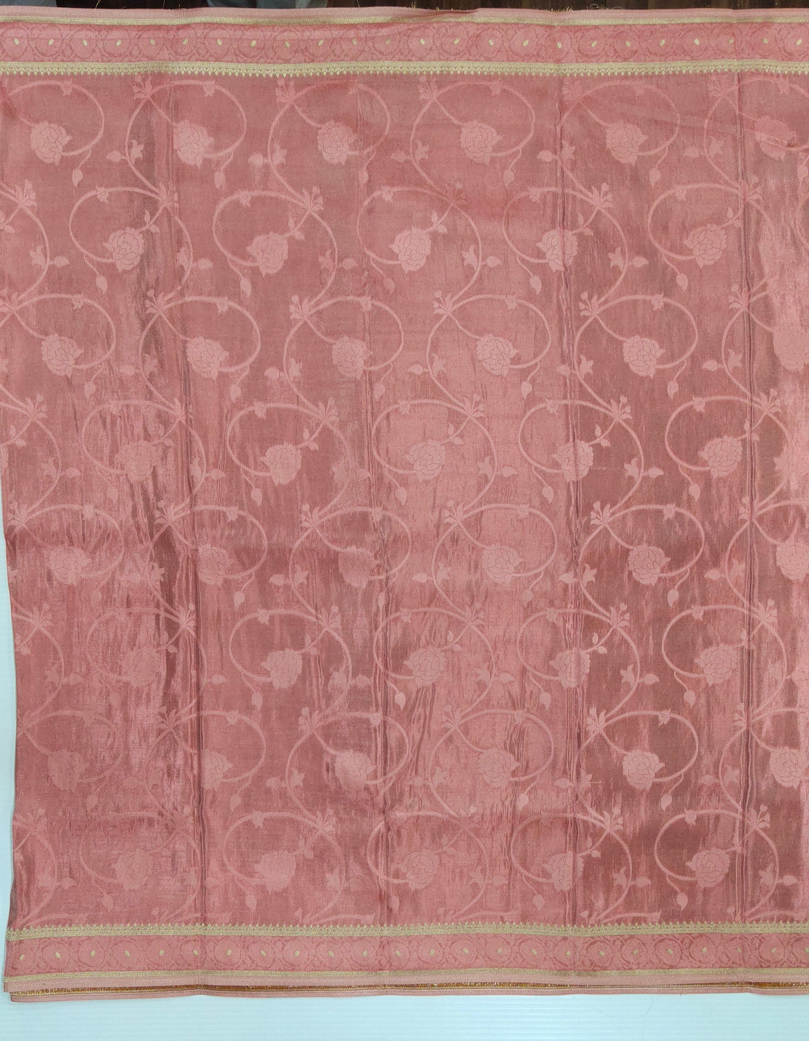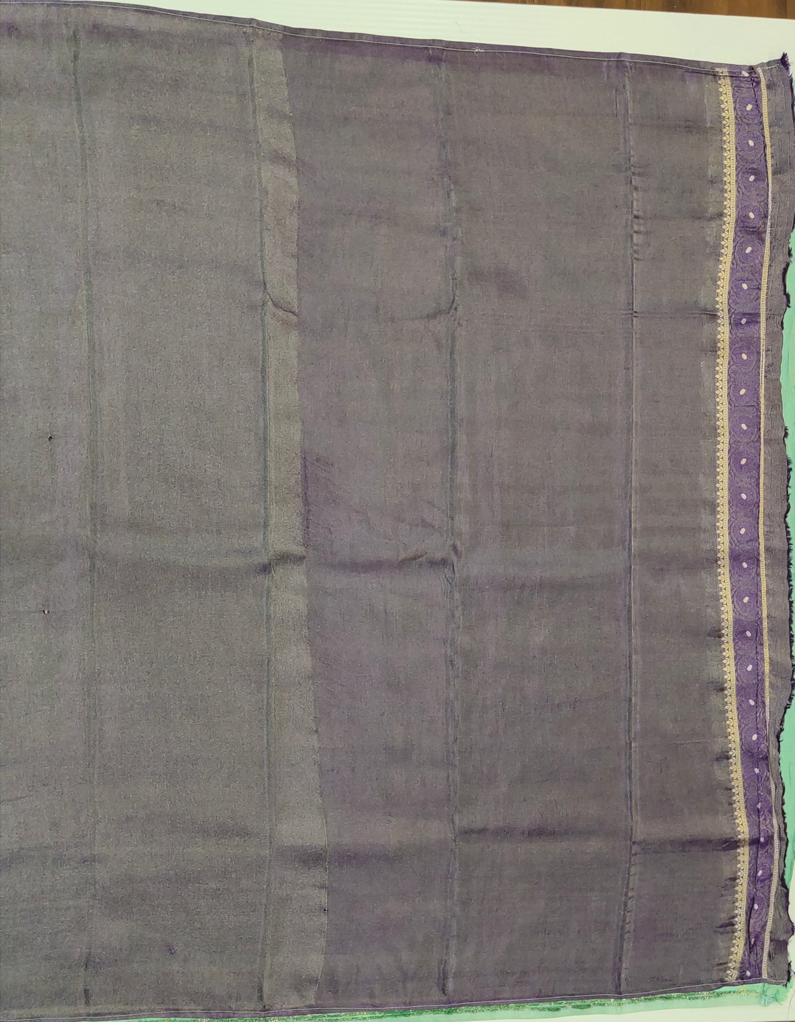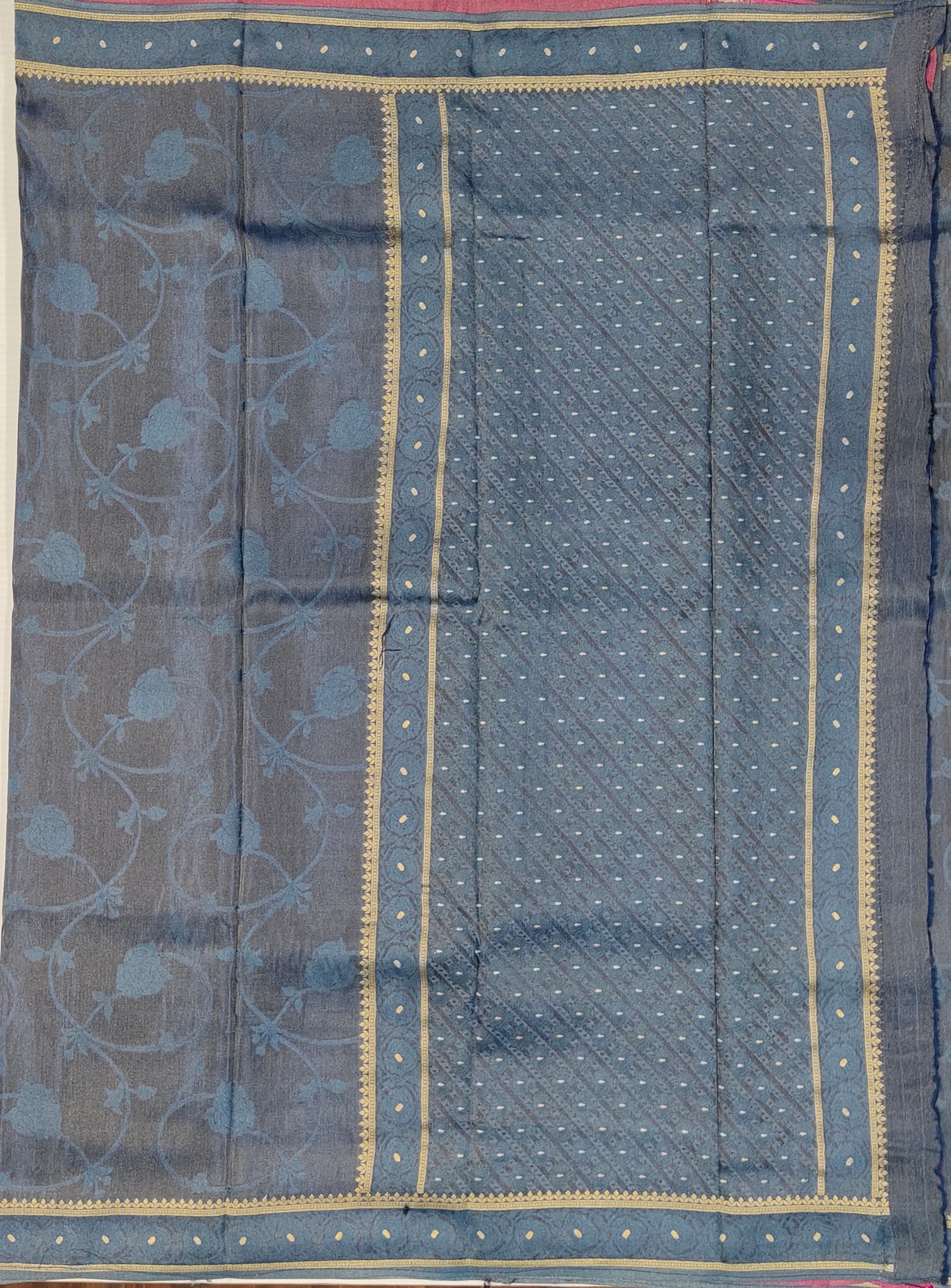 Banaras Crepe Saree with Shimmer Body and Contrast Blouse.