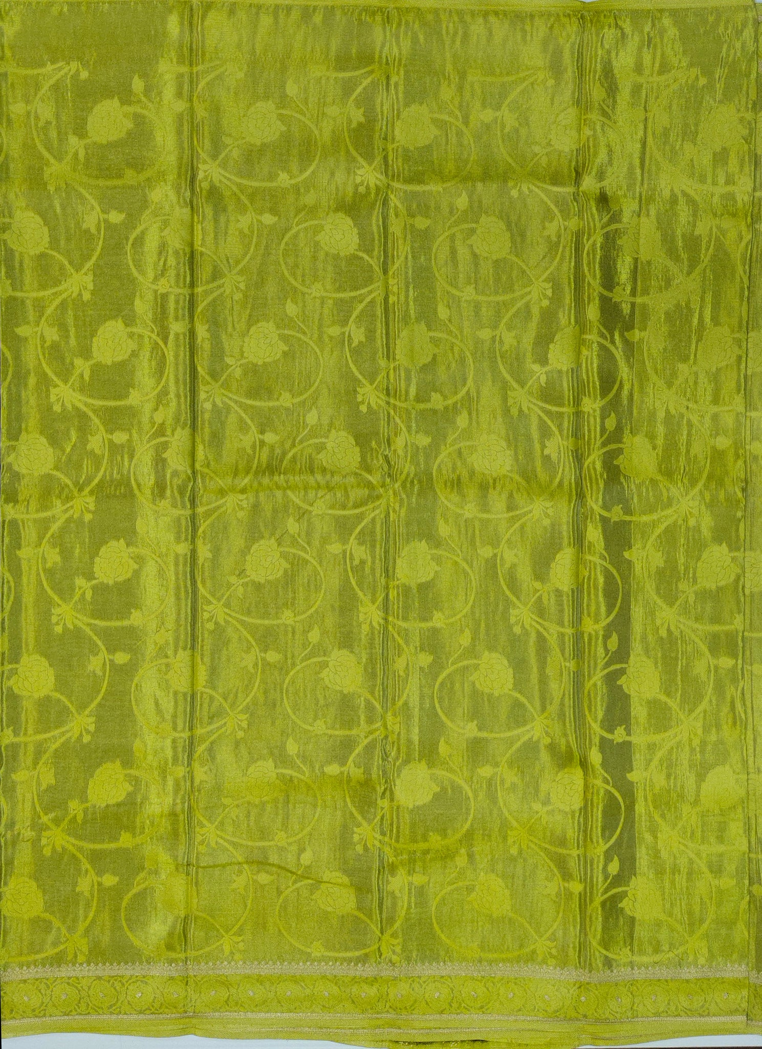 Experience elegance with our Banarasi Chinnon Crepe Saree, featuring a refined contrast border, pallu, and matching blouse. The lightweight Chinnon Crepe fabric offers a graceful drape, while the traditional Banaras design adds timeless charm. Perfect for formal occasions, this saree combines classic beauty with modern comfort, enhancing your sophisticated style effortlessly.