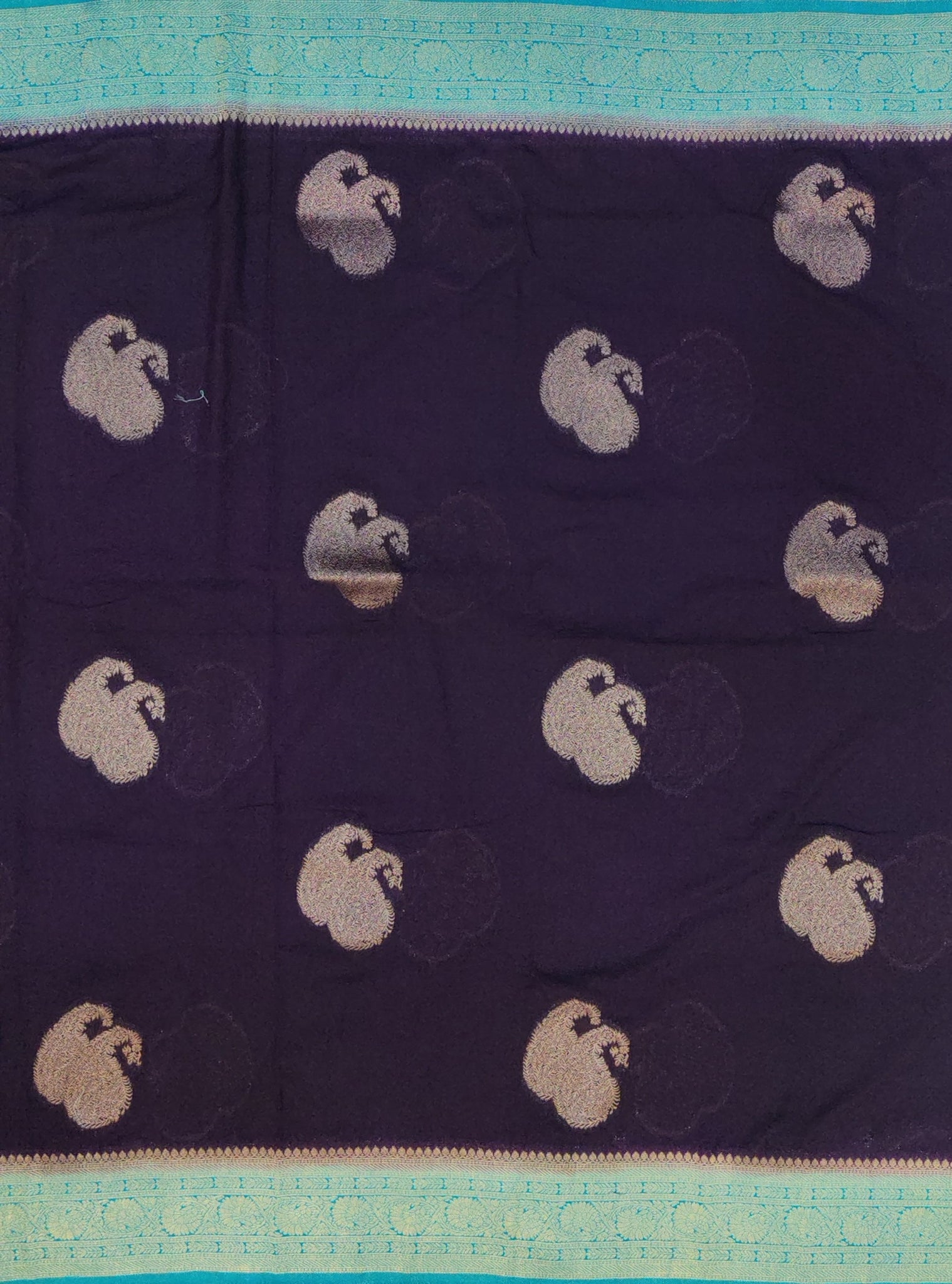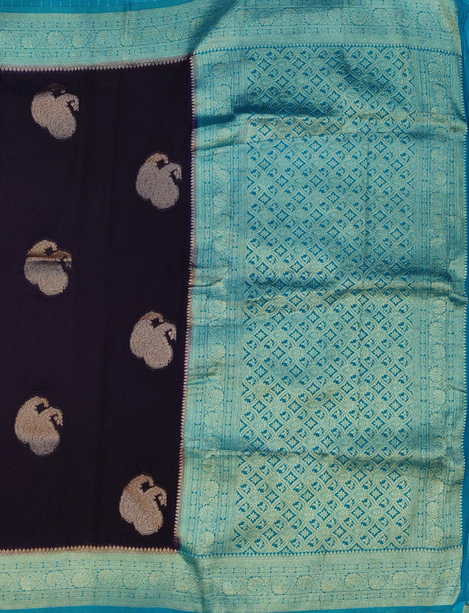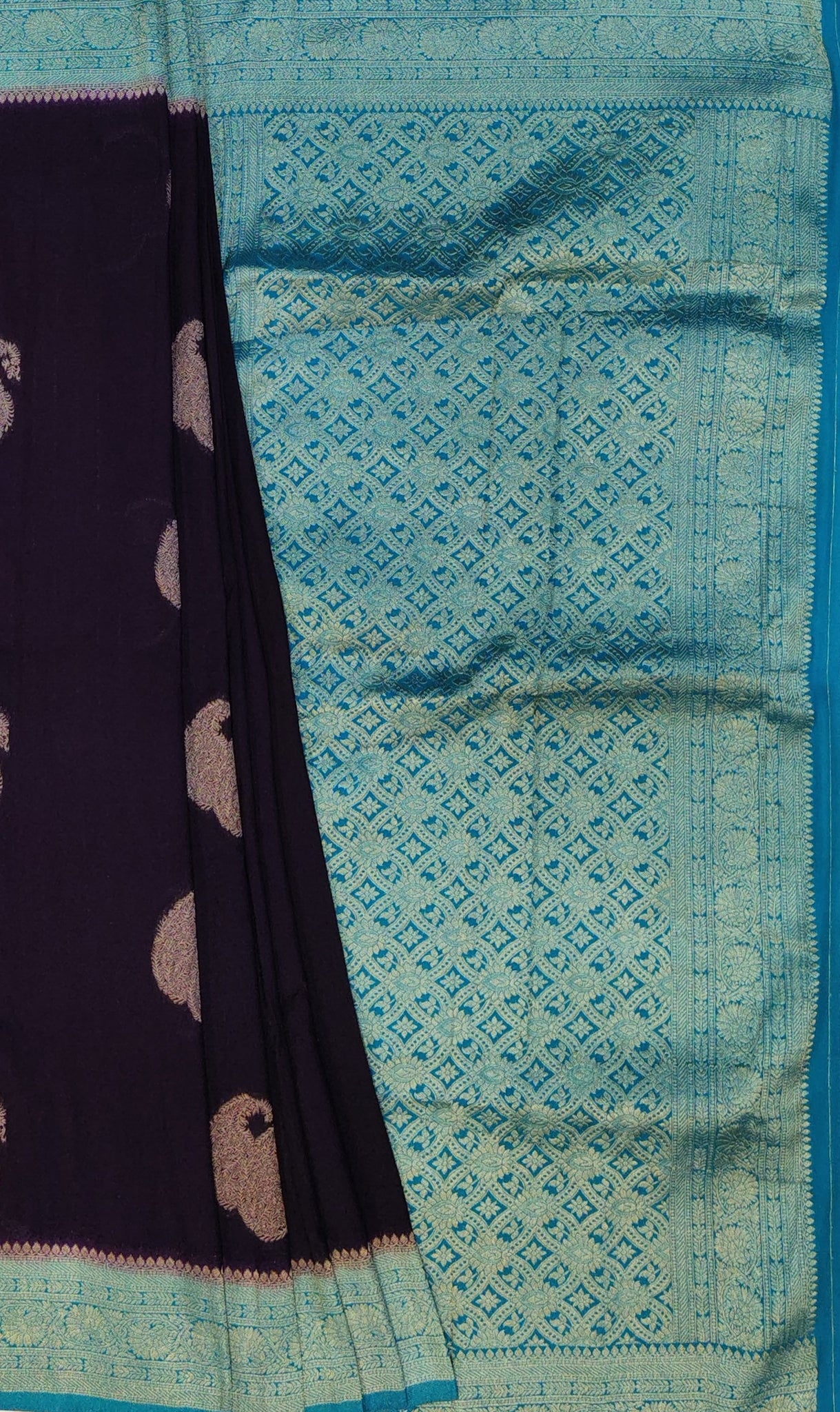 Banaras Georgette Saree with Paisley Buttis all over with Contrast Border,Pallu and Blouse- Jamoon
