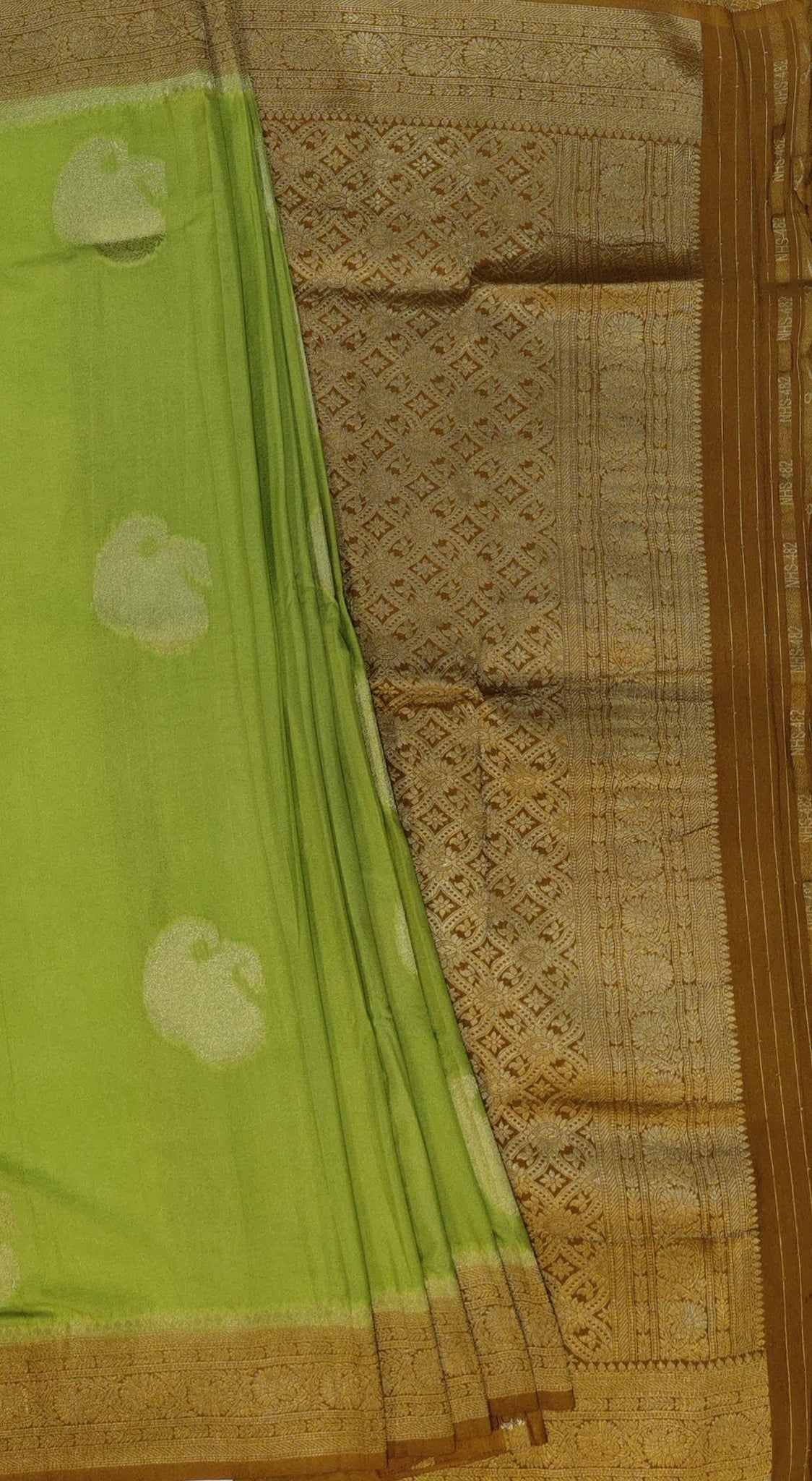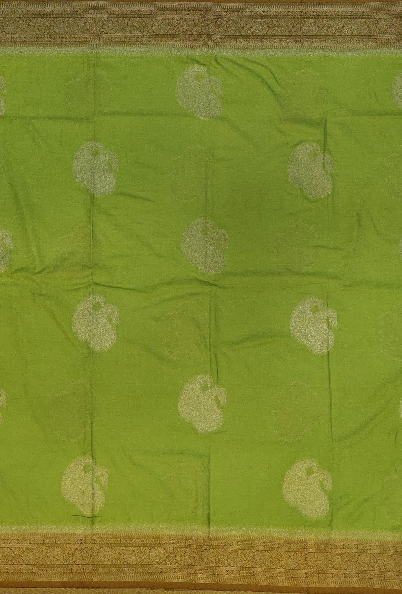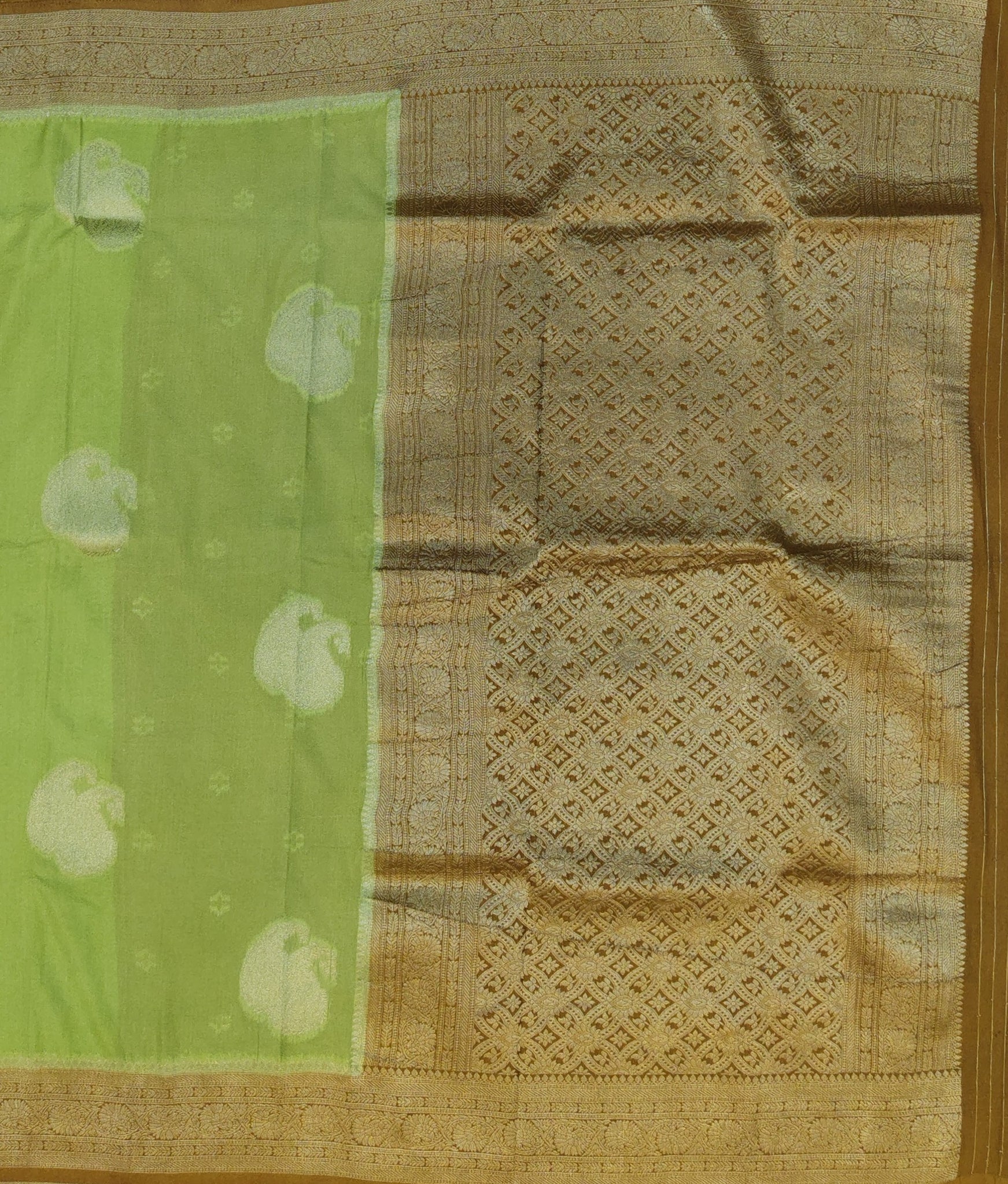 Banaras Georgette Saree with Paisley Buttis all over with Contrast Border,Pallu and Blouse- Light Green