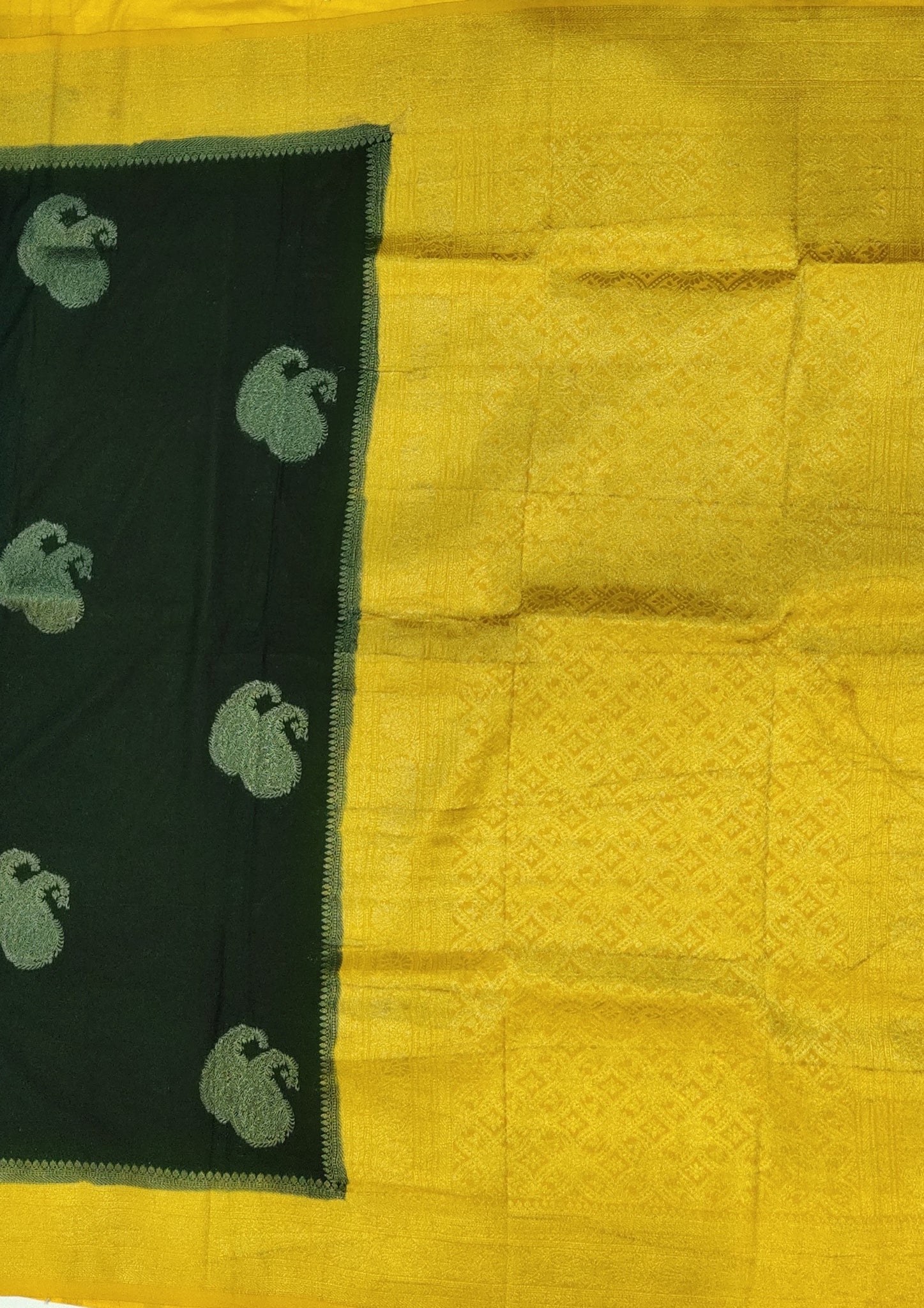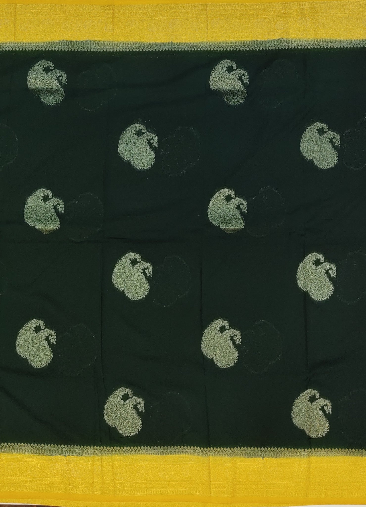 Banaras Georgette Saree with Paisley Buttis all over with Contrast Border,Paluu and Blouse- Bottle Green