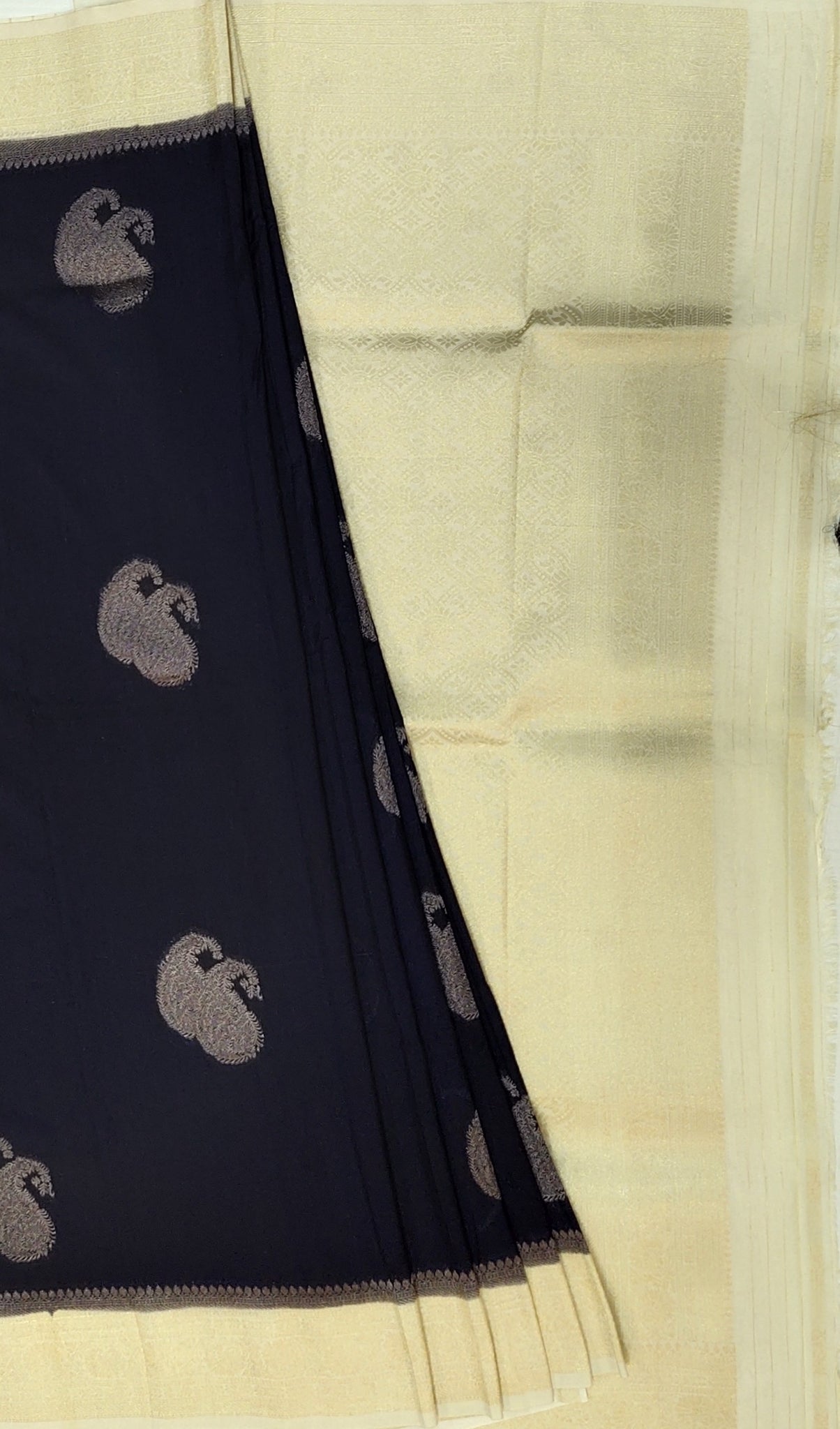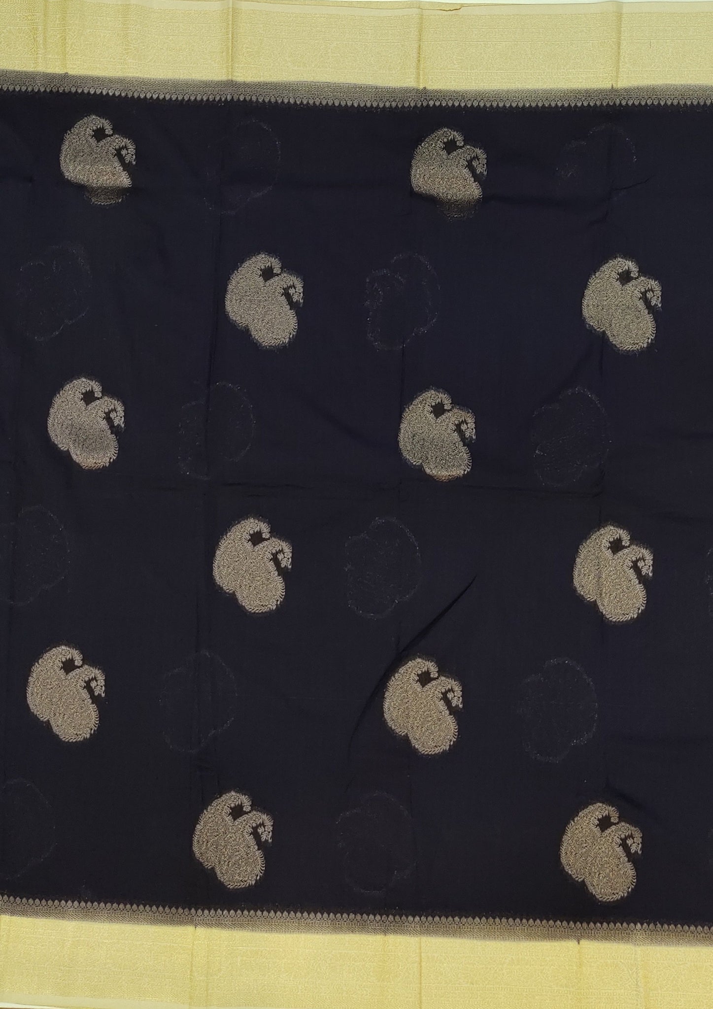 Banaras Georgette Saree with Paisley Buttis all over with Contrast Border,Pallu and Blouse- Navy Blue