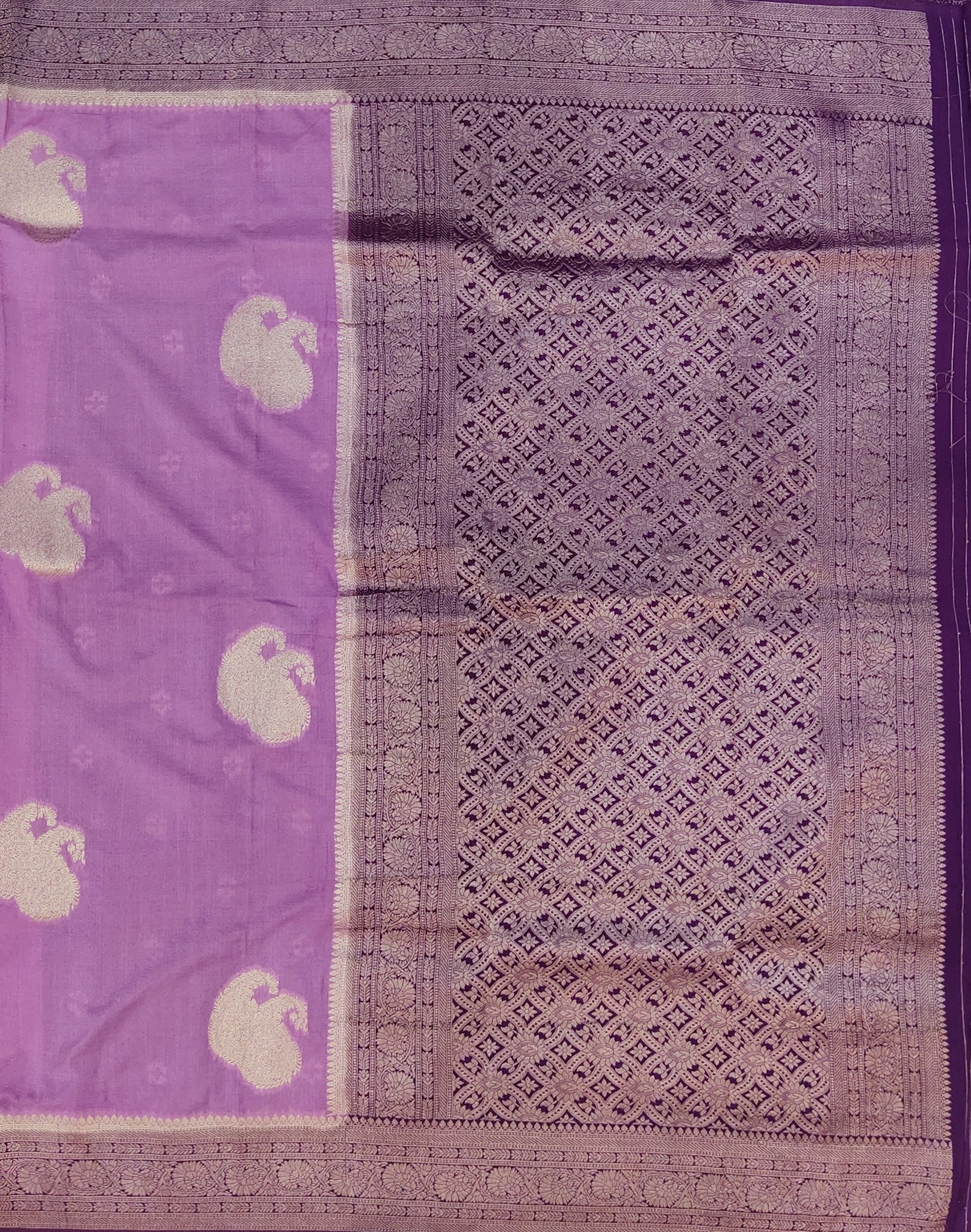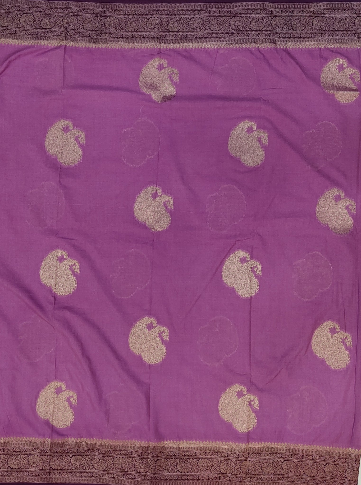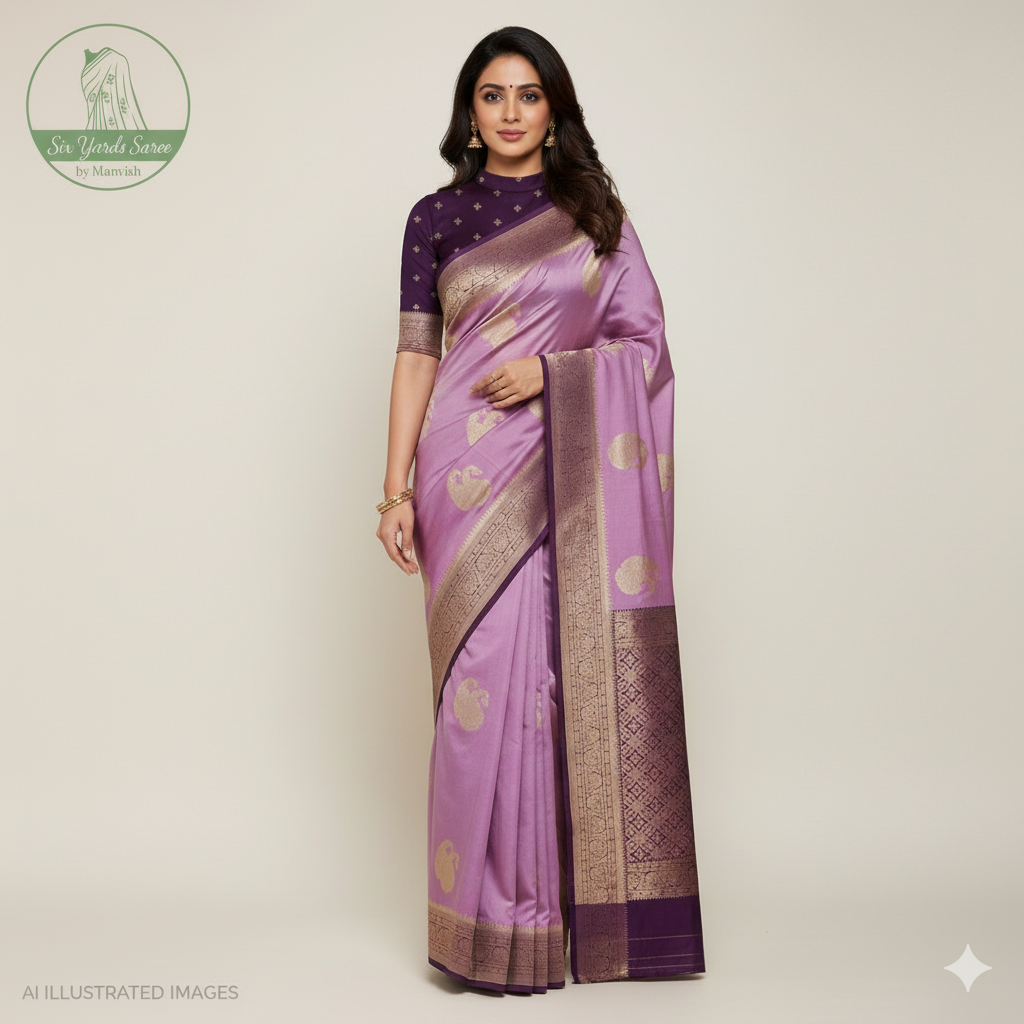 Banaras Georgette Saree with Paisley Buttis all over with Contrast Border,Paluu and Blouse- Onion Pink