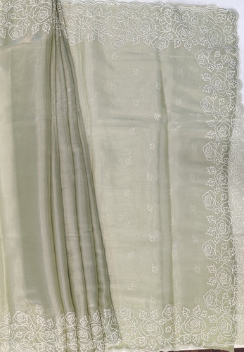 Designer Saree with Rice Stitch Embroidery on Crush Fabric-Light Green color