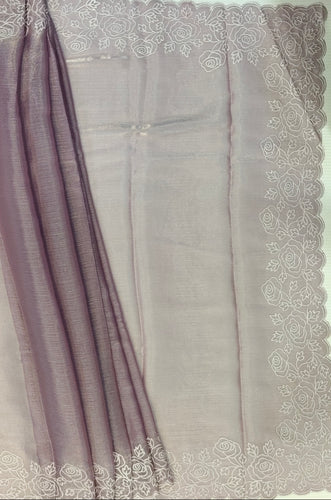Designer Saree with Rice Stitch Embroidery on Crush Fabric-Grey color
