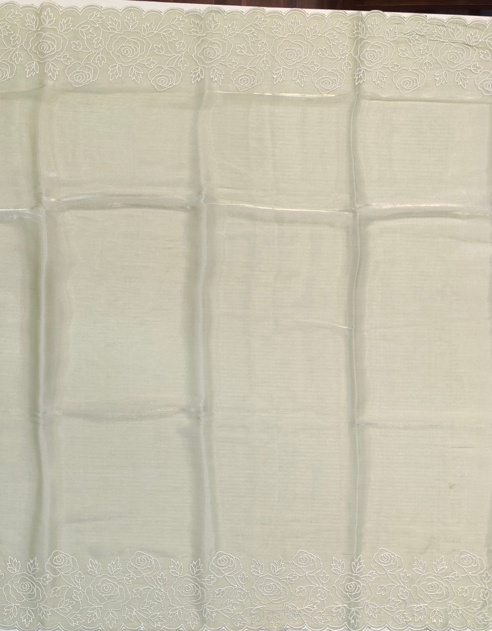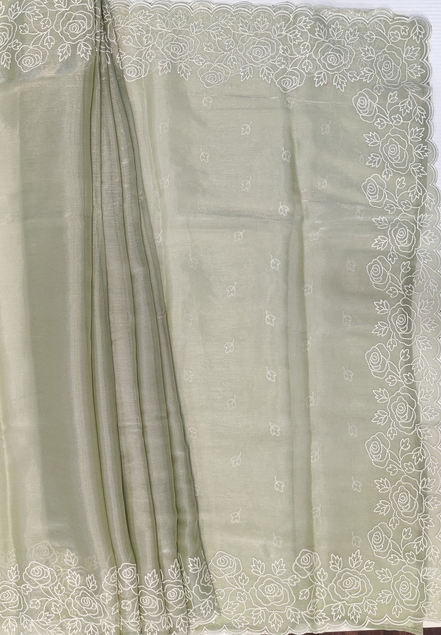 Elevate your wardrobe with this exquisite designer saree featuring delicate rice stitch embroidery on luxurious crush fabric. The intricate detailing enhances the saree’s elegant texture, making it perfect for special occasions. Lightweight yet richly adorned, it drapes gracefully to offer a refined and timeless appeal. Ideal for those who appreciate artistry and subtle sophistication in their attire.