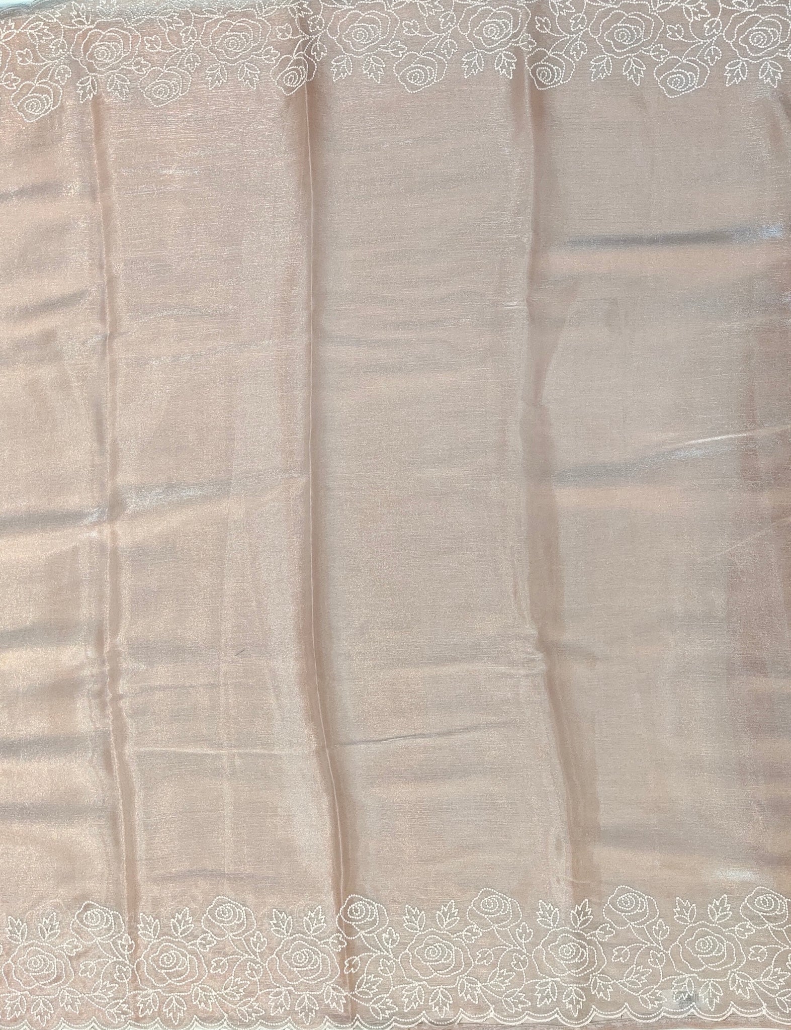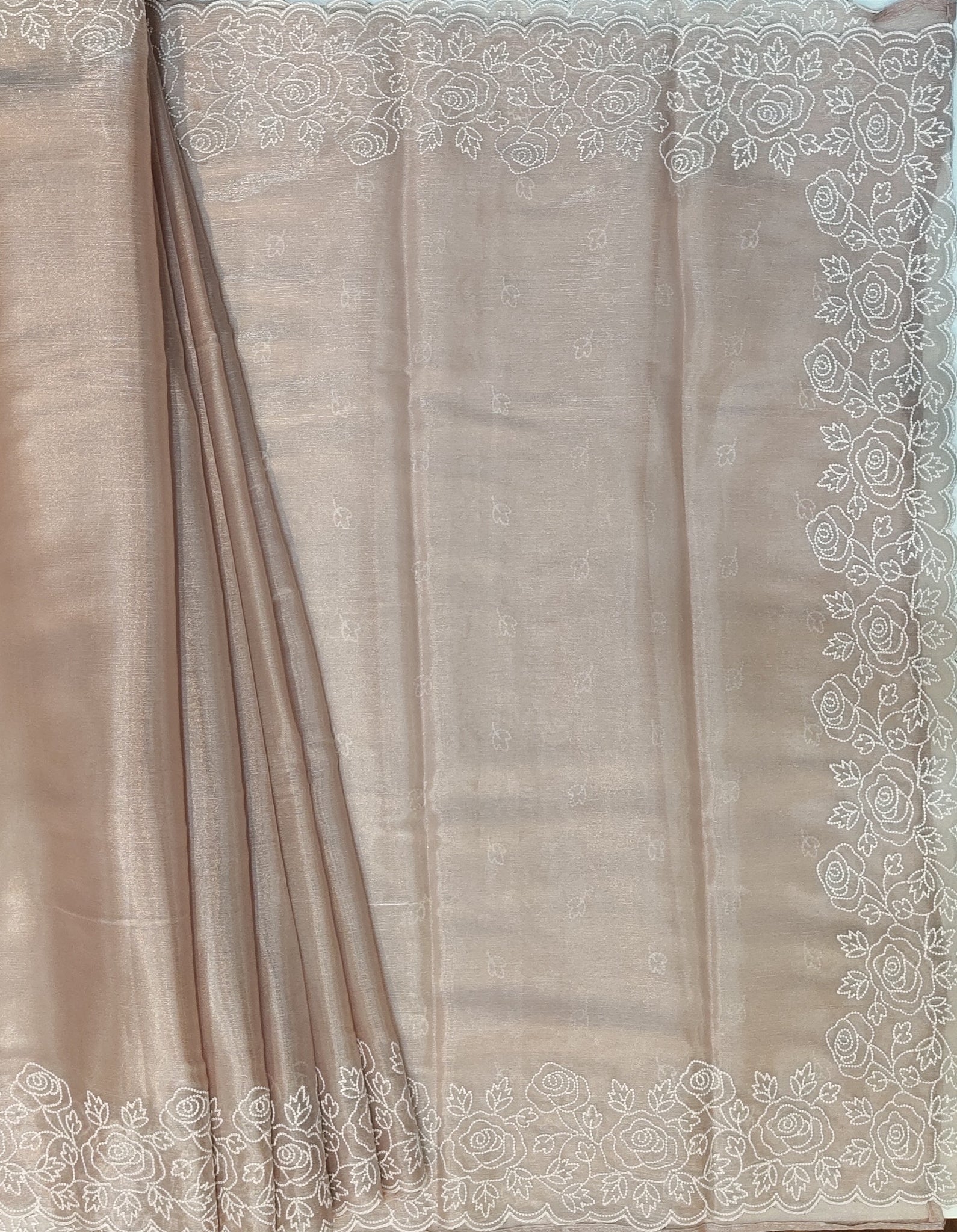 Designer Saree with Rice Stitch Embroidery on Crush Fabric-Peach color