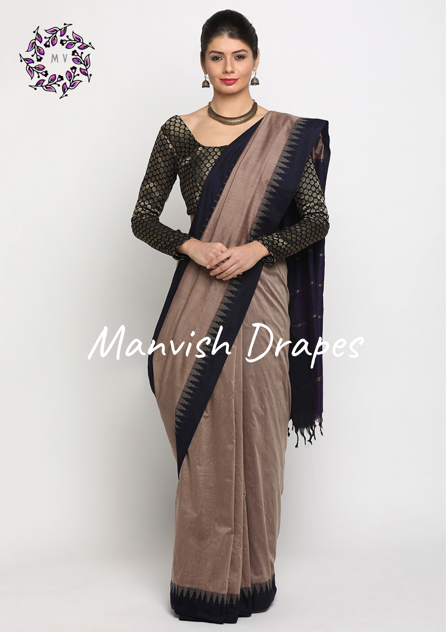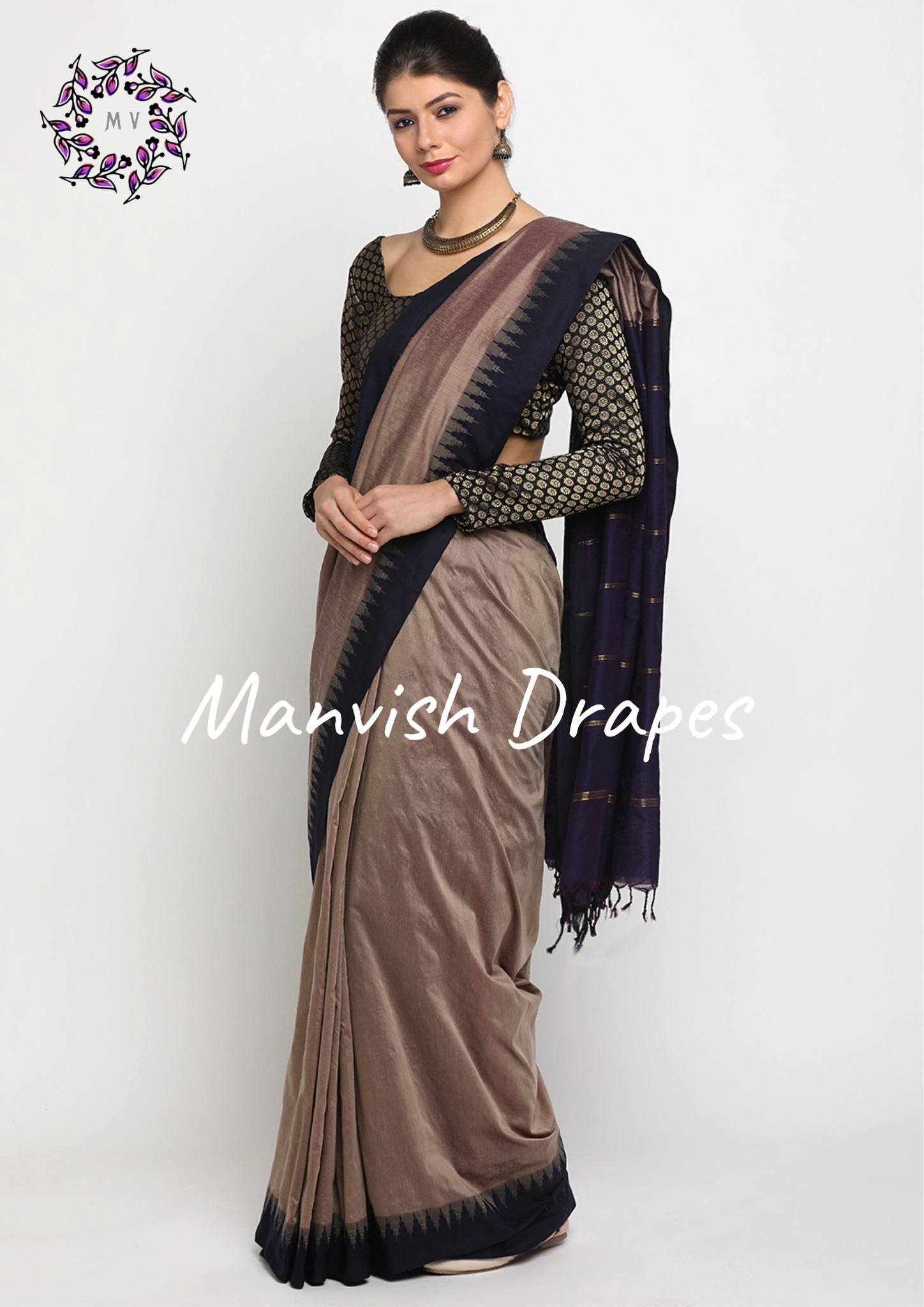Color - Tussar With Navy Blue Border