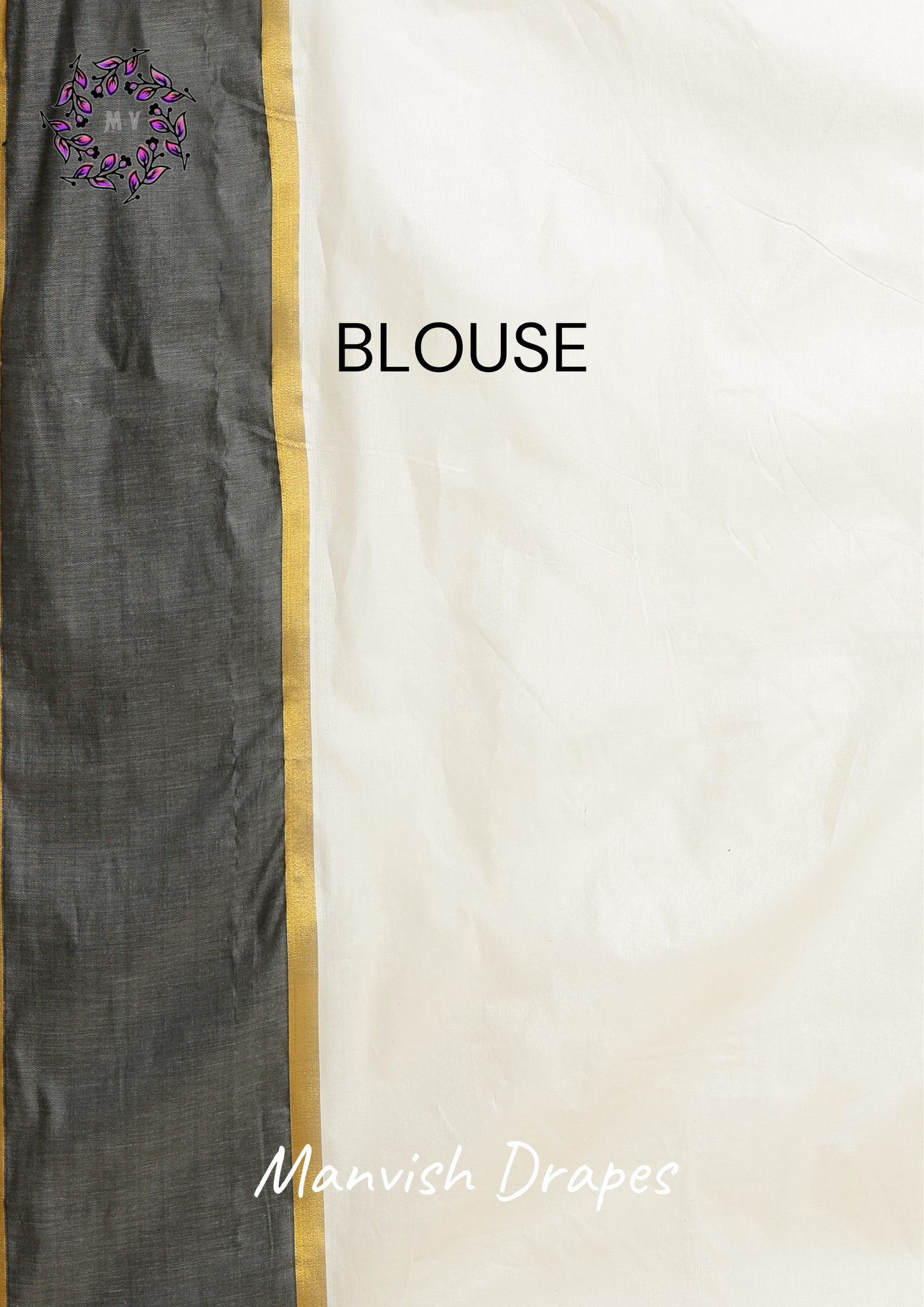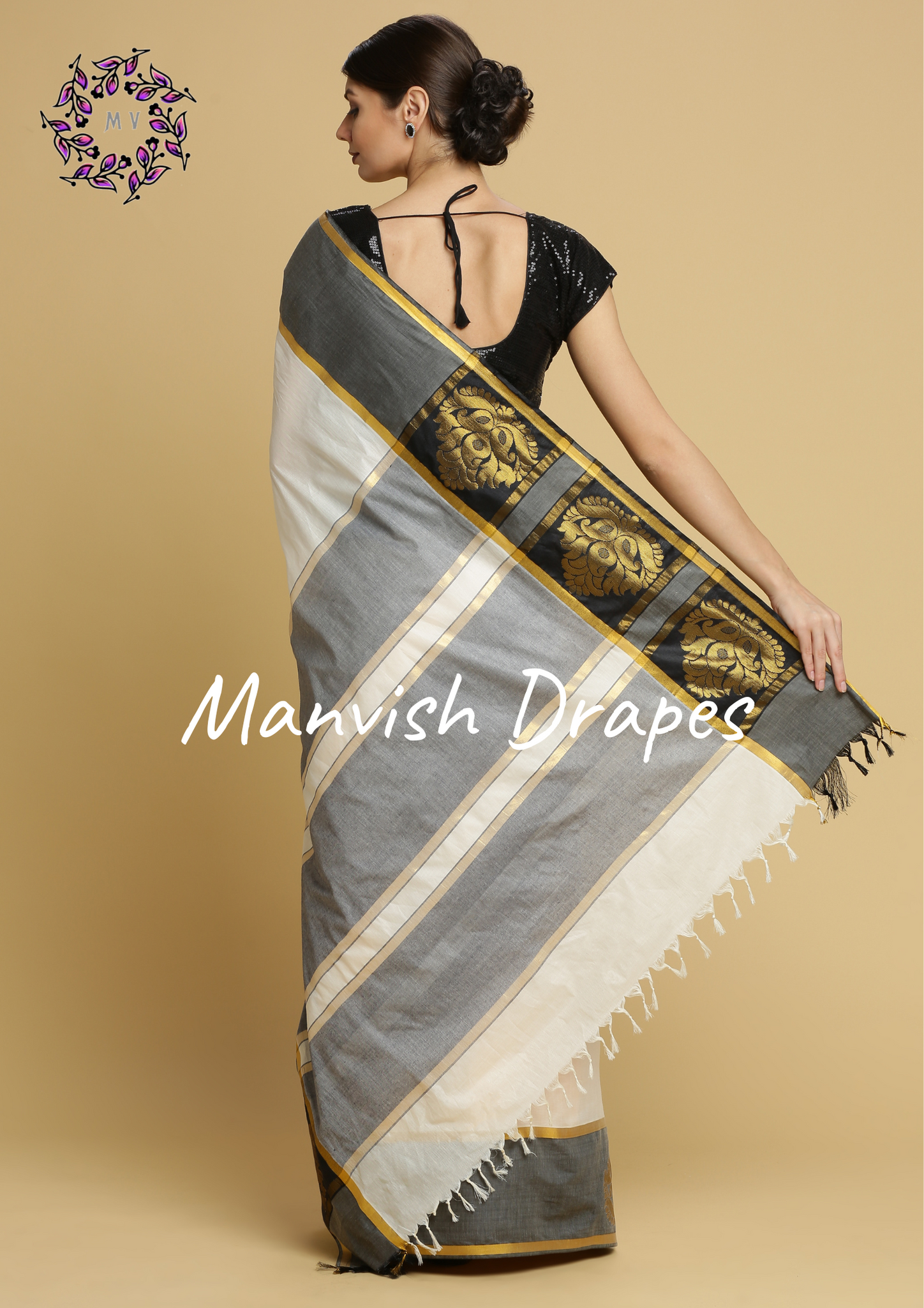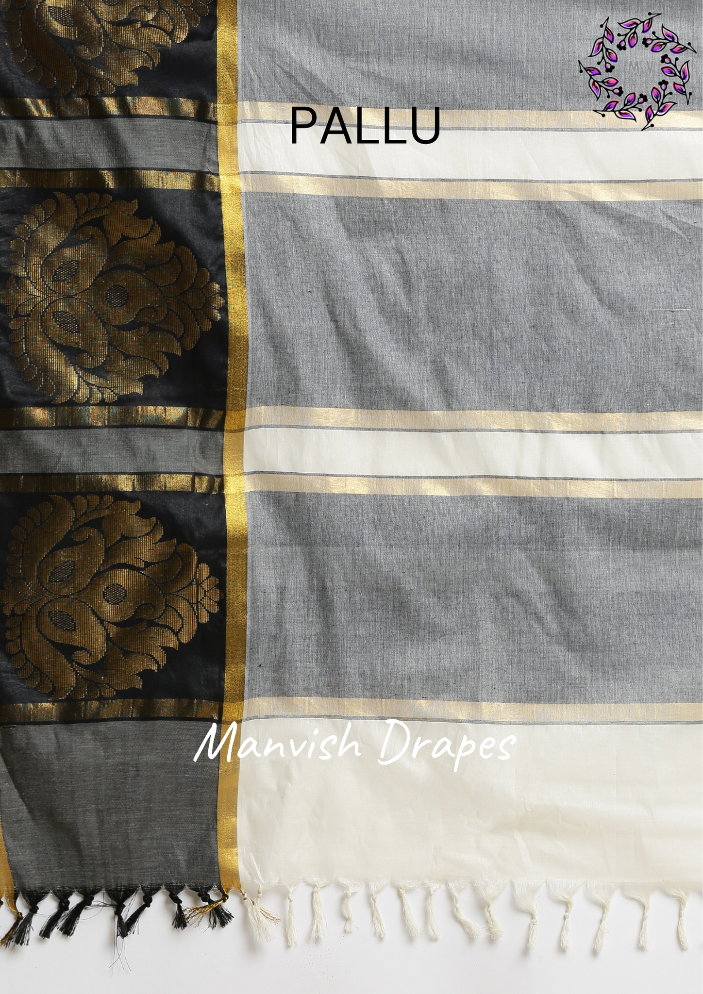 Plain Kerala Kasavu Pure Cotton Saree with Woven Border (GREY BORDER)
