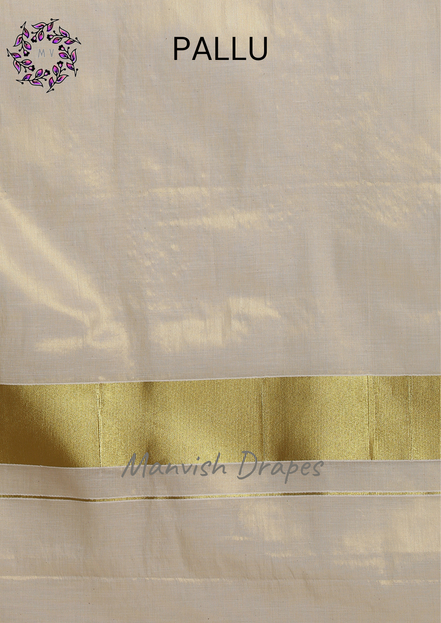 Plain Tissue Kerala Kasavu Pure Cotton Saree with Zari Tissue Border (GOLD ZARI)