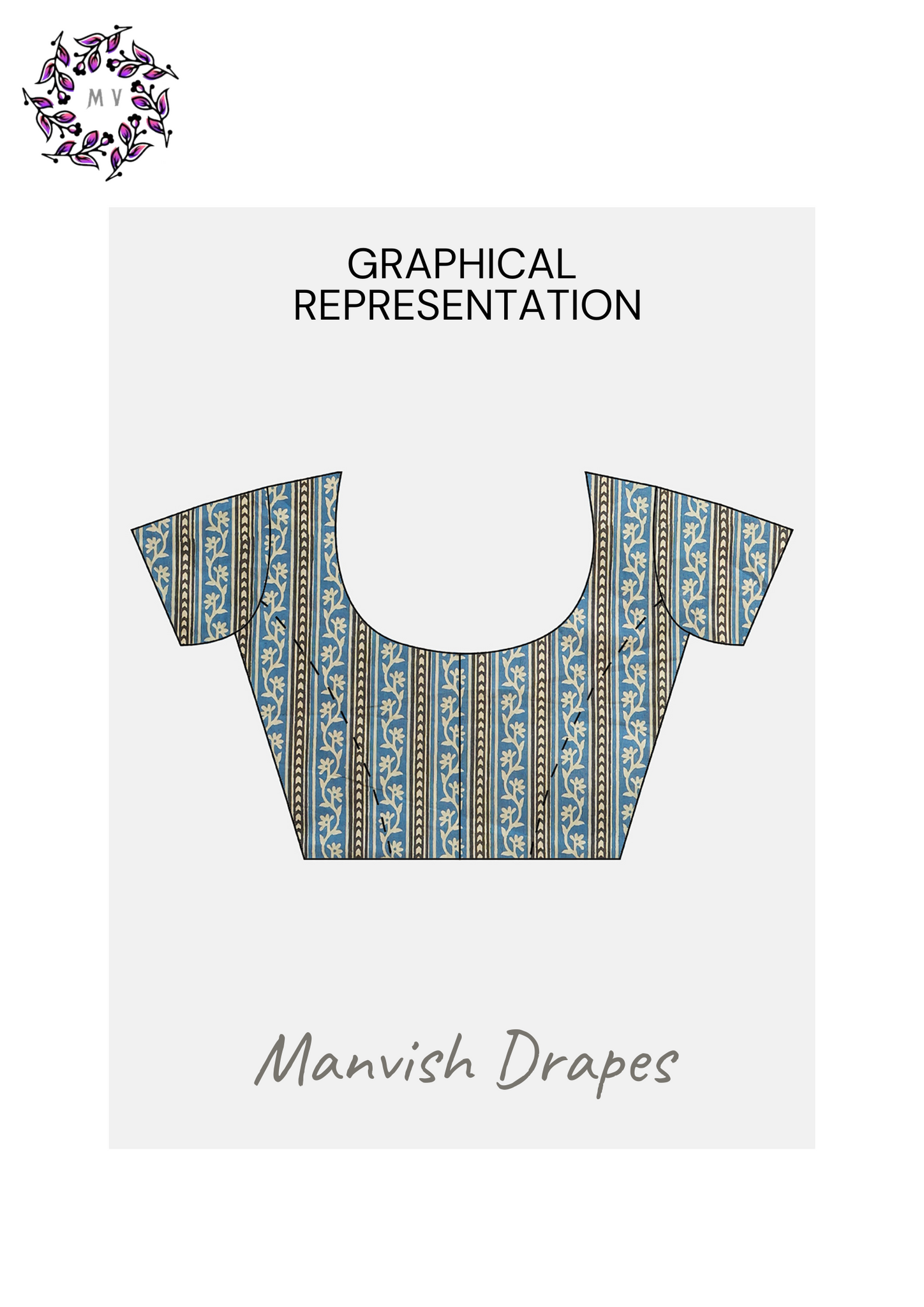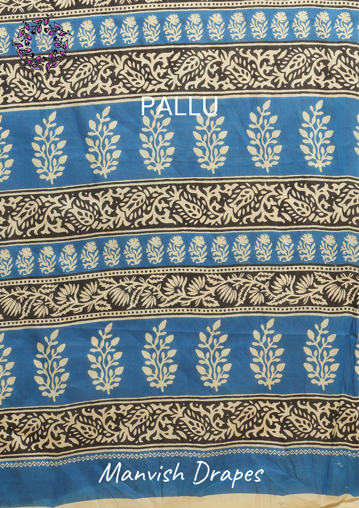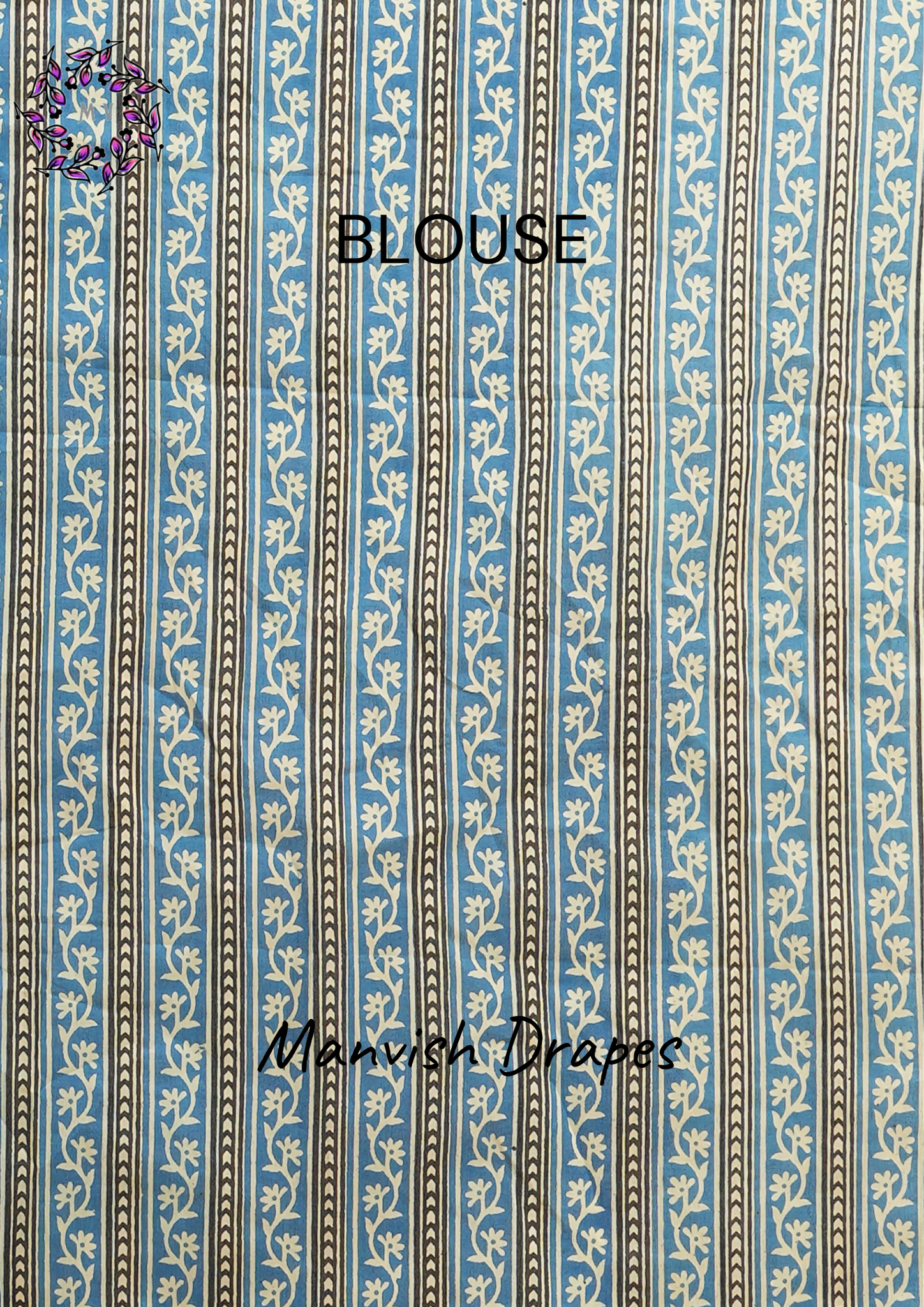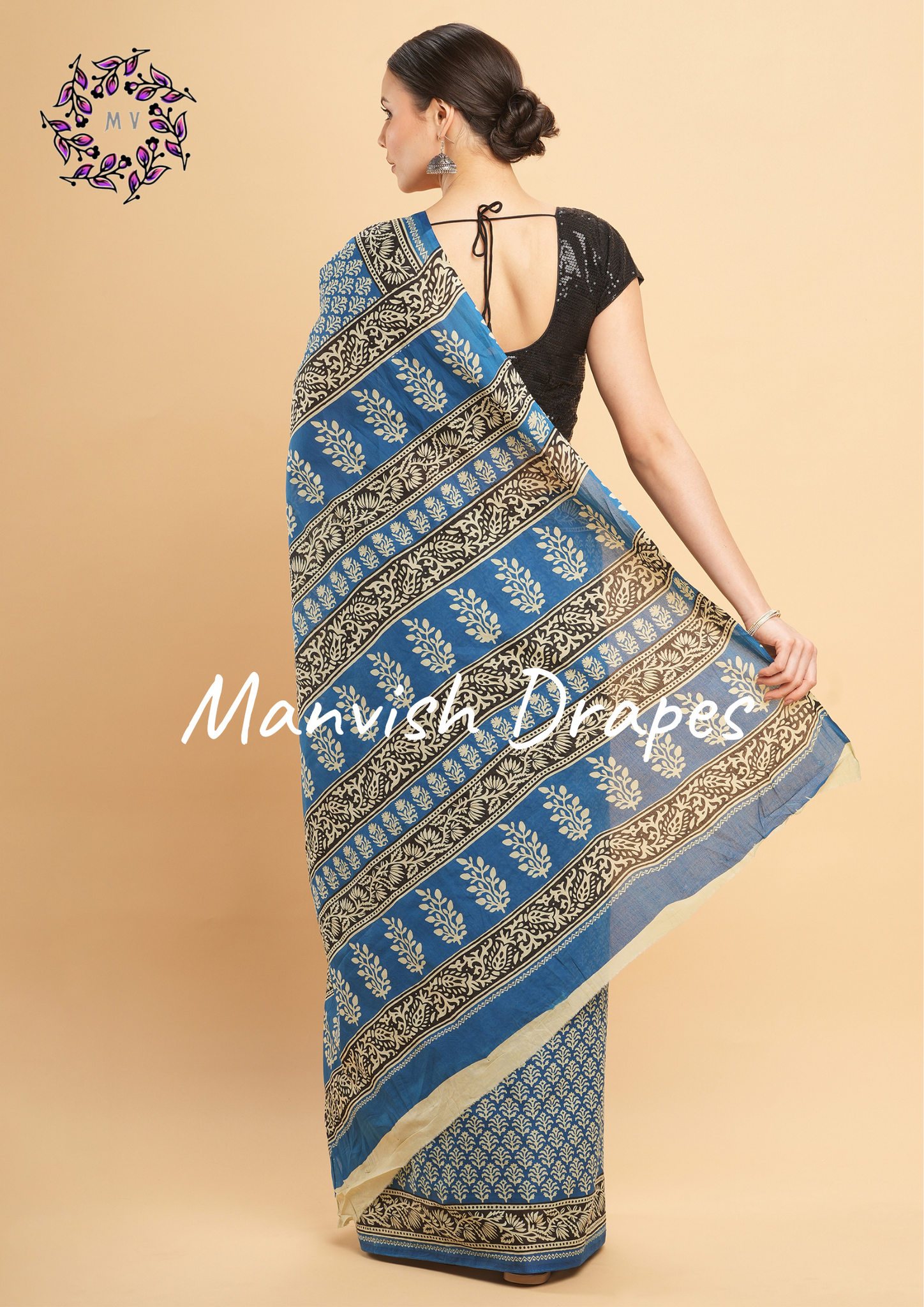 This Blue Mul Mul Pure Cotton Saree with Block Prints is a timeless, transitional piece for your wardrobe. Lightweight and comfortable, it transitions seamlessly from the office to everyday wear. Crafted with luxurious Mul Mul cotton fabric, it adds a sophisticated touch to any ensemble. Perfect for making a statement of effortless elegance, you'll have heads turning wherever you go.