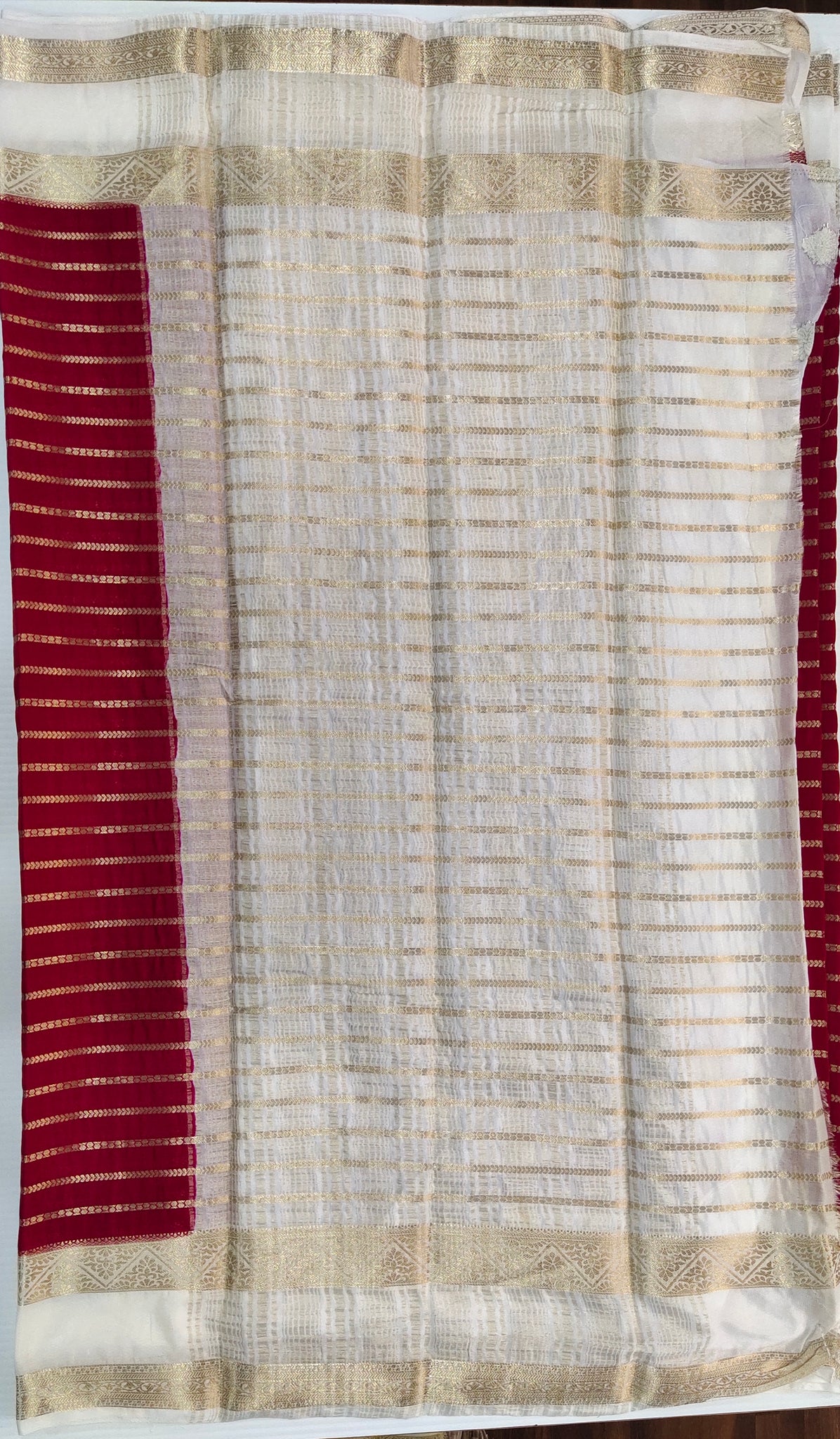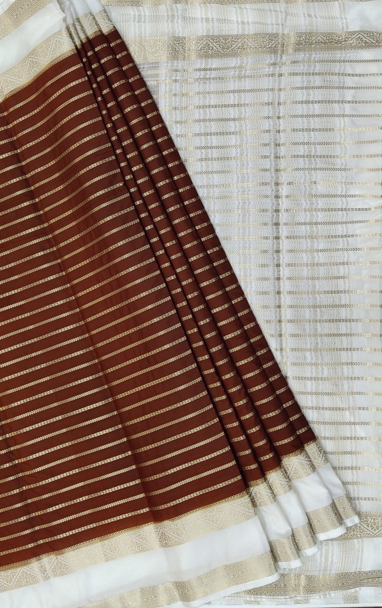 Indulge in the timeless elegance of our semi mysuru crepe Saree. Adorned with a contrasting border and blouse, this saree features a stunning checked body that exudes sophistication. Its luxurious fabric and intricate design will make you the center of attention at any event. Elevate your style with this exclusive piece.