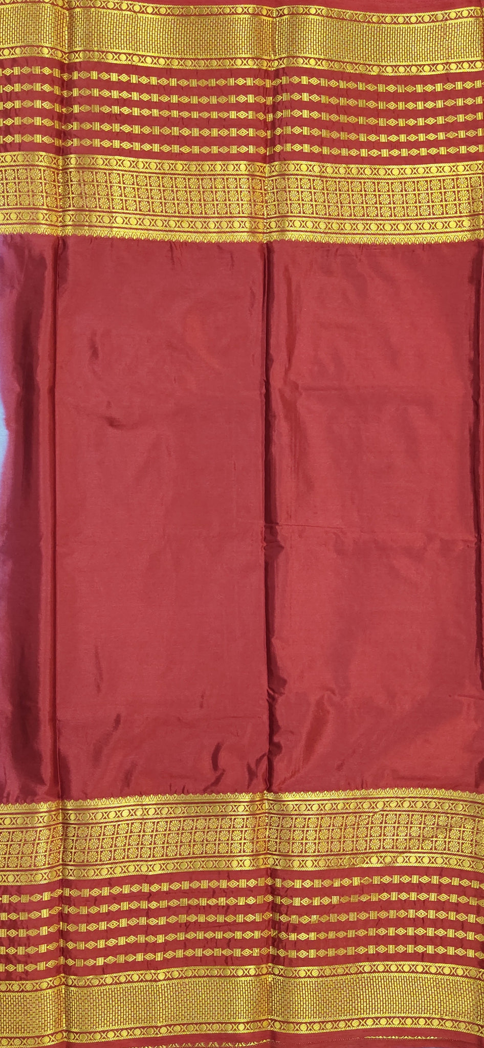 Elevate your wardrobe with this Semi Mysuru Crepe Saree, featuring a striking 3D contrast border and pallu that add depth and elegance to its drape. Paired with a matching blouse, this saree combines traditional craftsmanship with contemporary style, making it perfect for formal occasions or refined celebrations. The crepe fabric ensures a graceful fall and comfortable wear throughout the day.