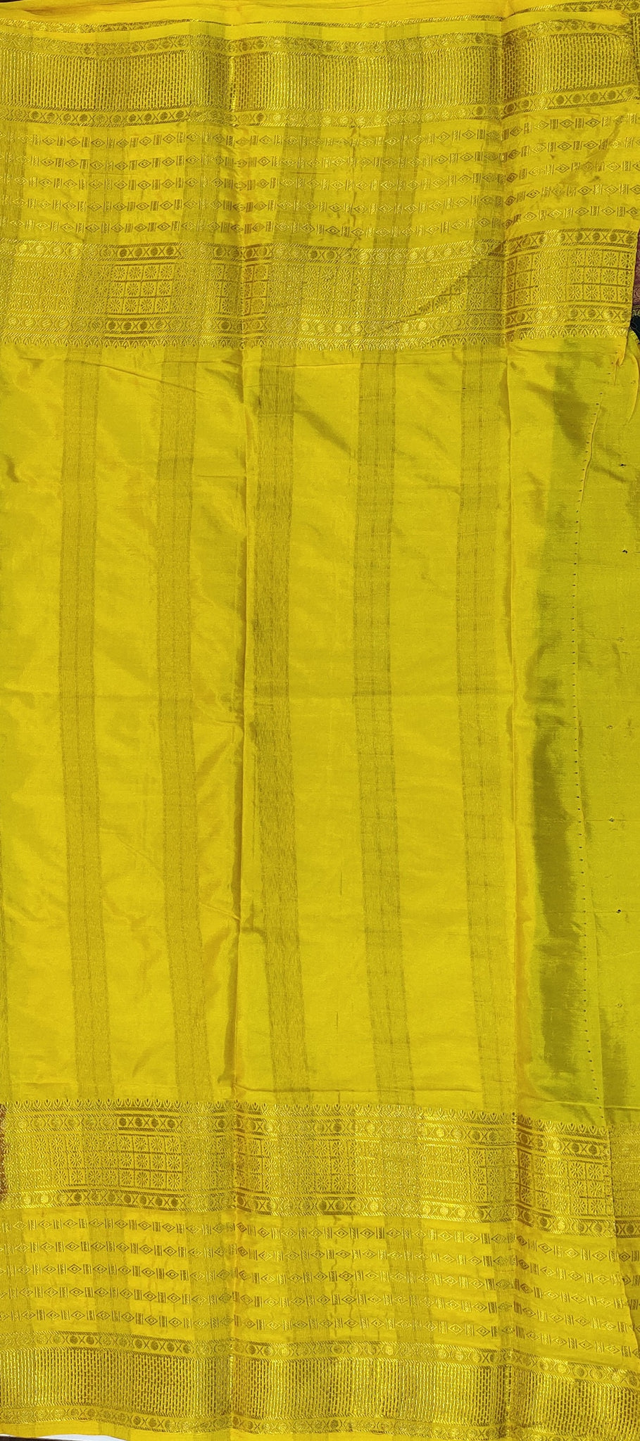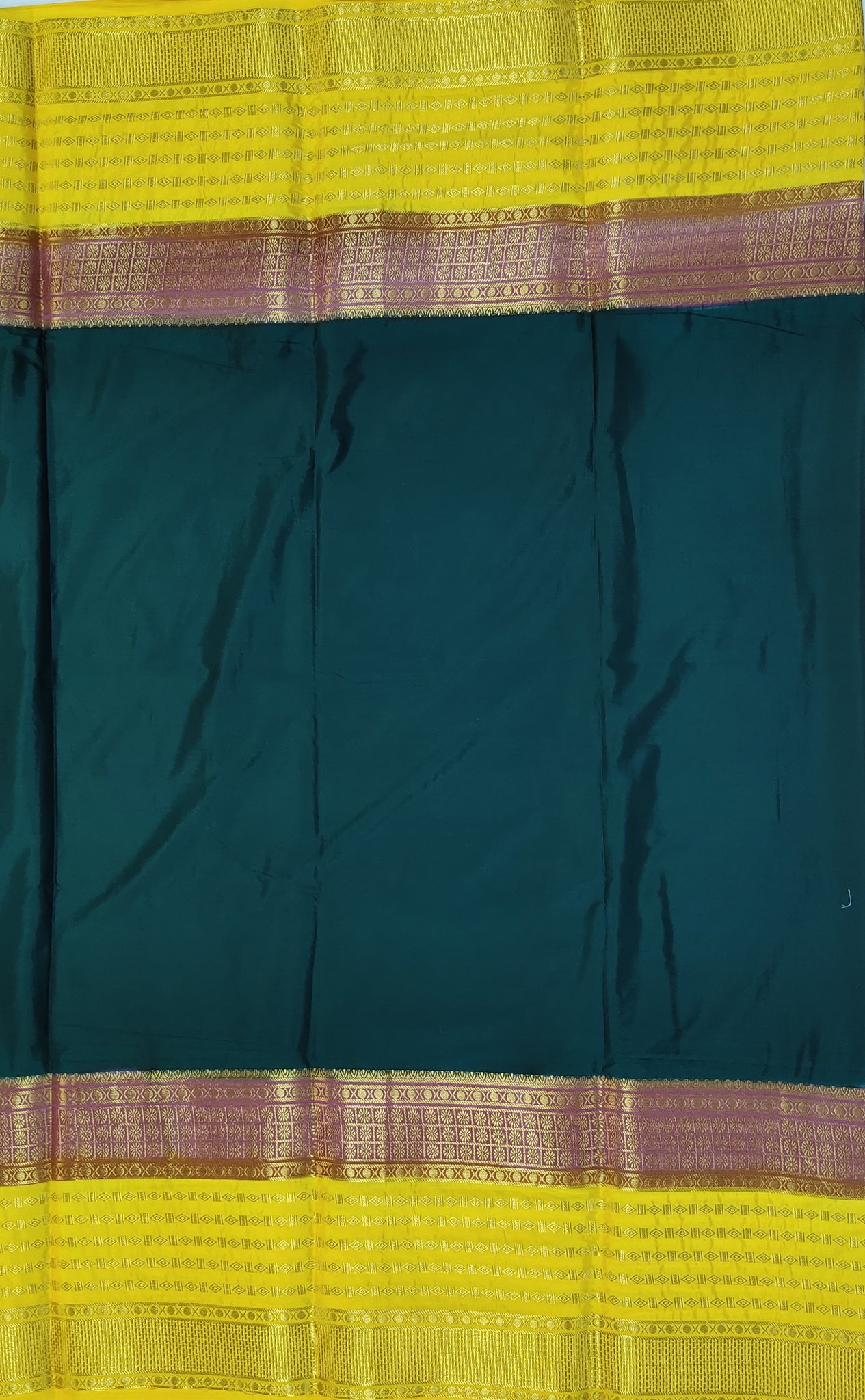 Elevate your wardrobe with this Semi Mysuru Crepe Saree, featuring a striking 3D contrast border and pallu that add depth and elegance to its drape. Paired with a matching blouse, this saree combines traditional craftsmanship with contemporary style, making it perfect for formal occasions or refined celebrations. The crepe fabric ensures a graceful fall and comfortable wear throughout the day.