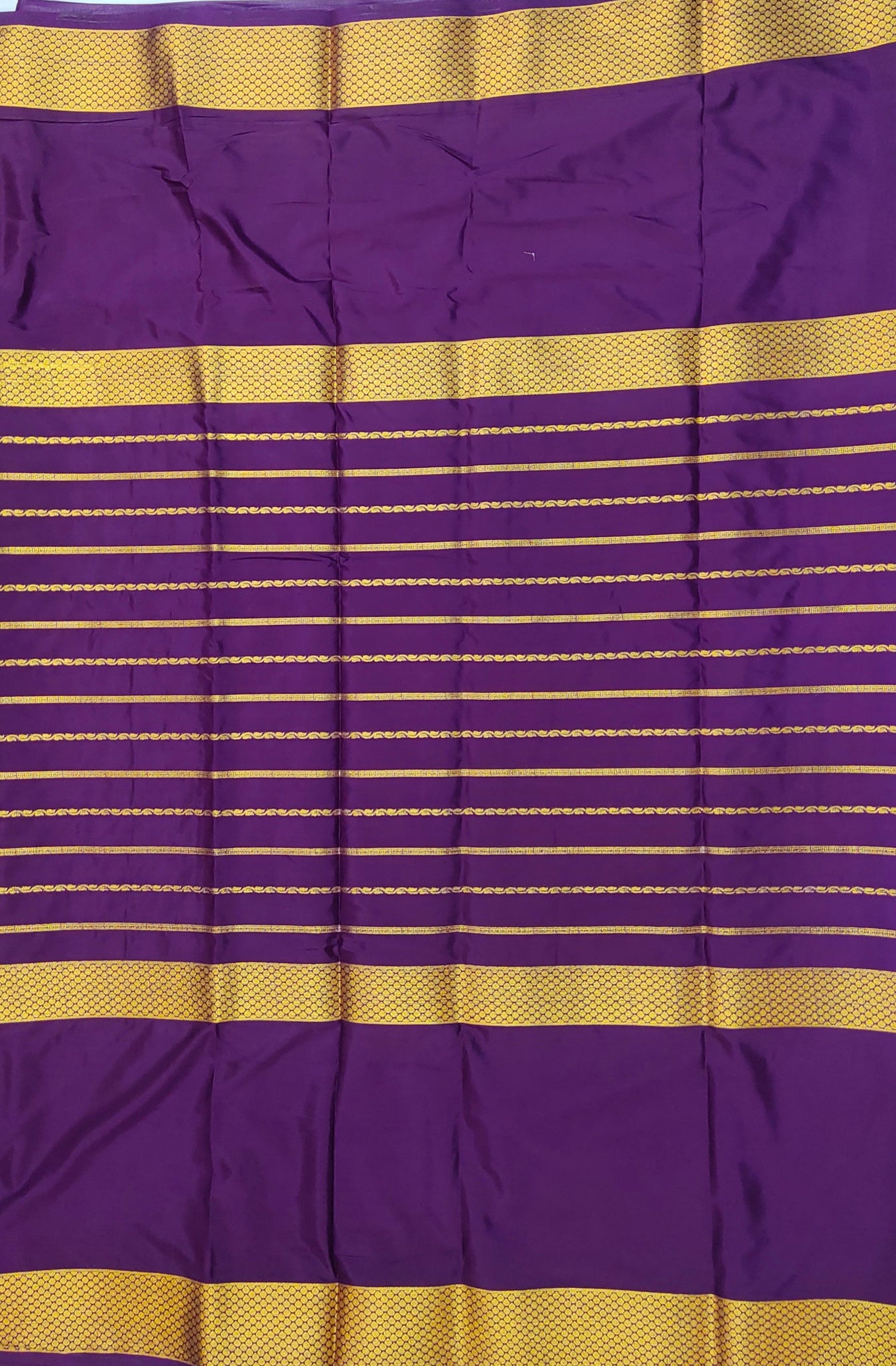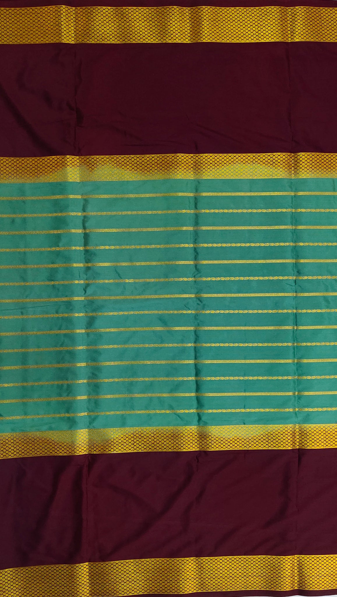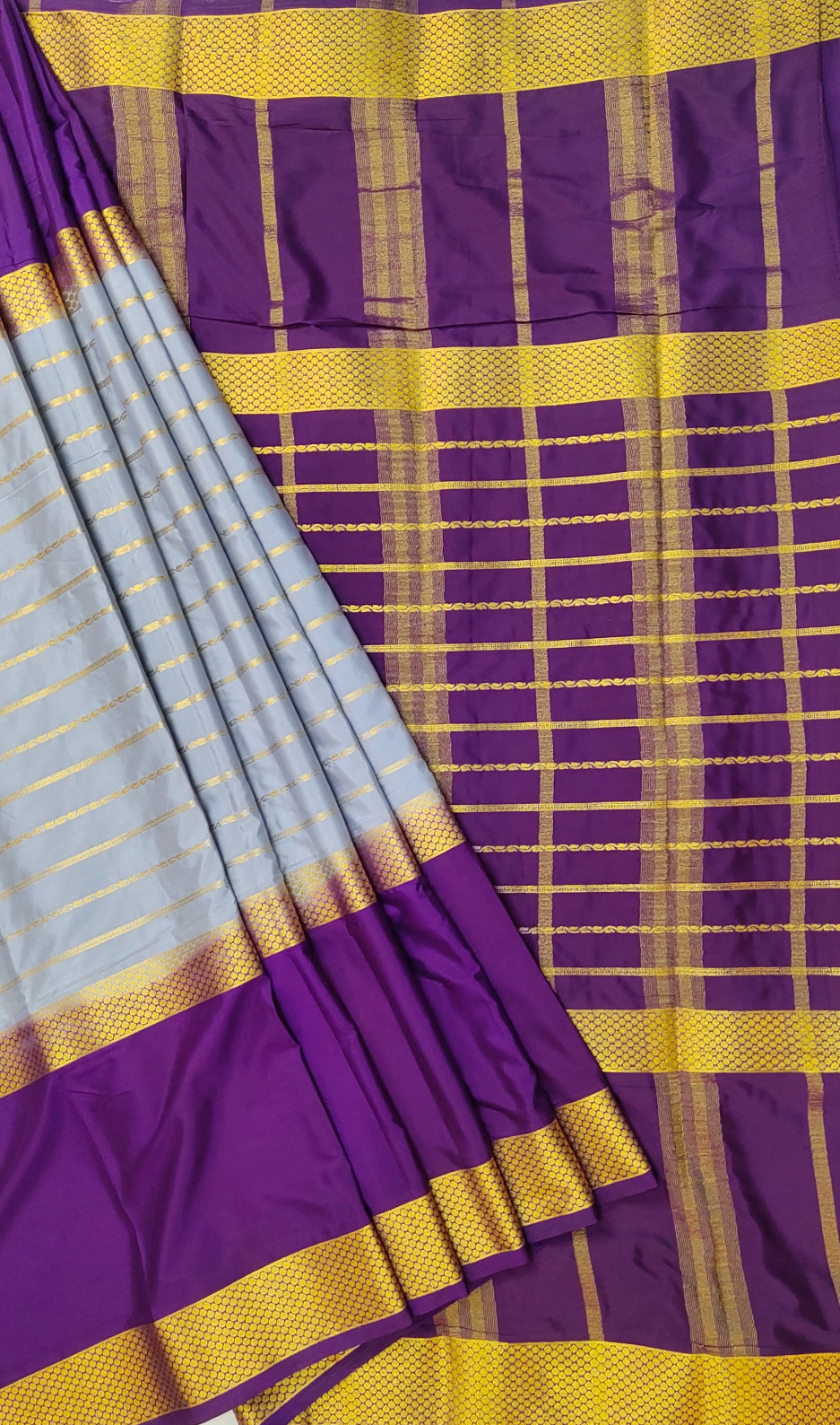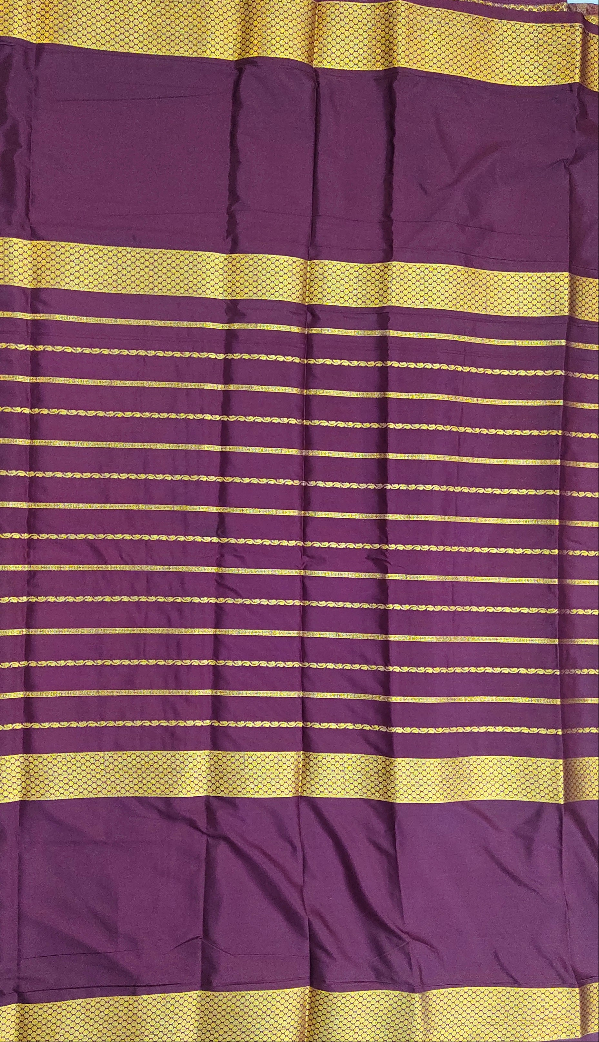 Indulge in the timeless elegance of our semi mysuru crepe Saree. Adorned with a contrasting border and blouse, this saree features a stunning striped body that exudes sophistication. Its luxurious fabric and intricate design will make you the center of attention at any event. Elevate your style with this exclusive piece.