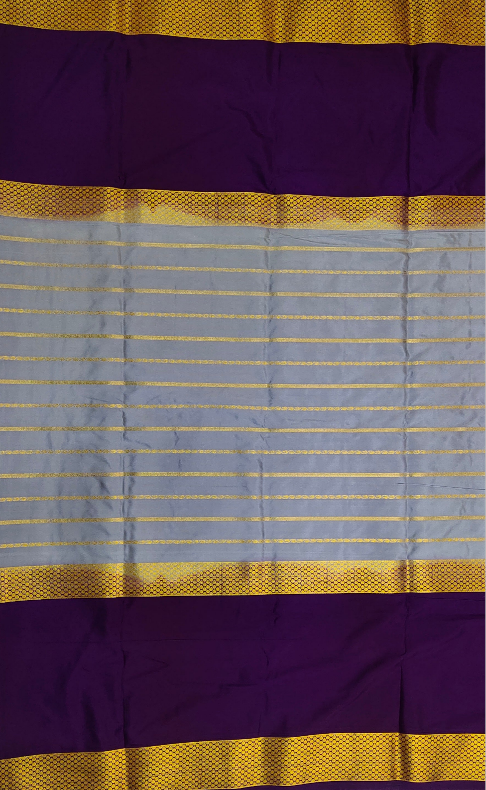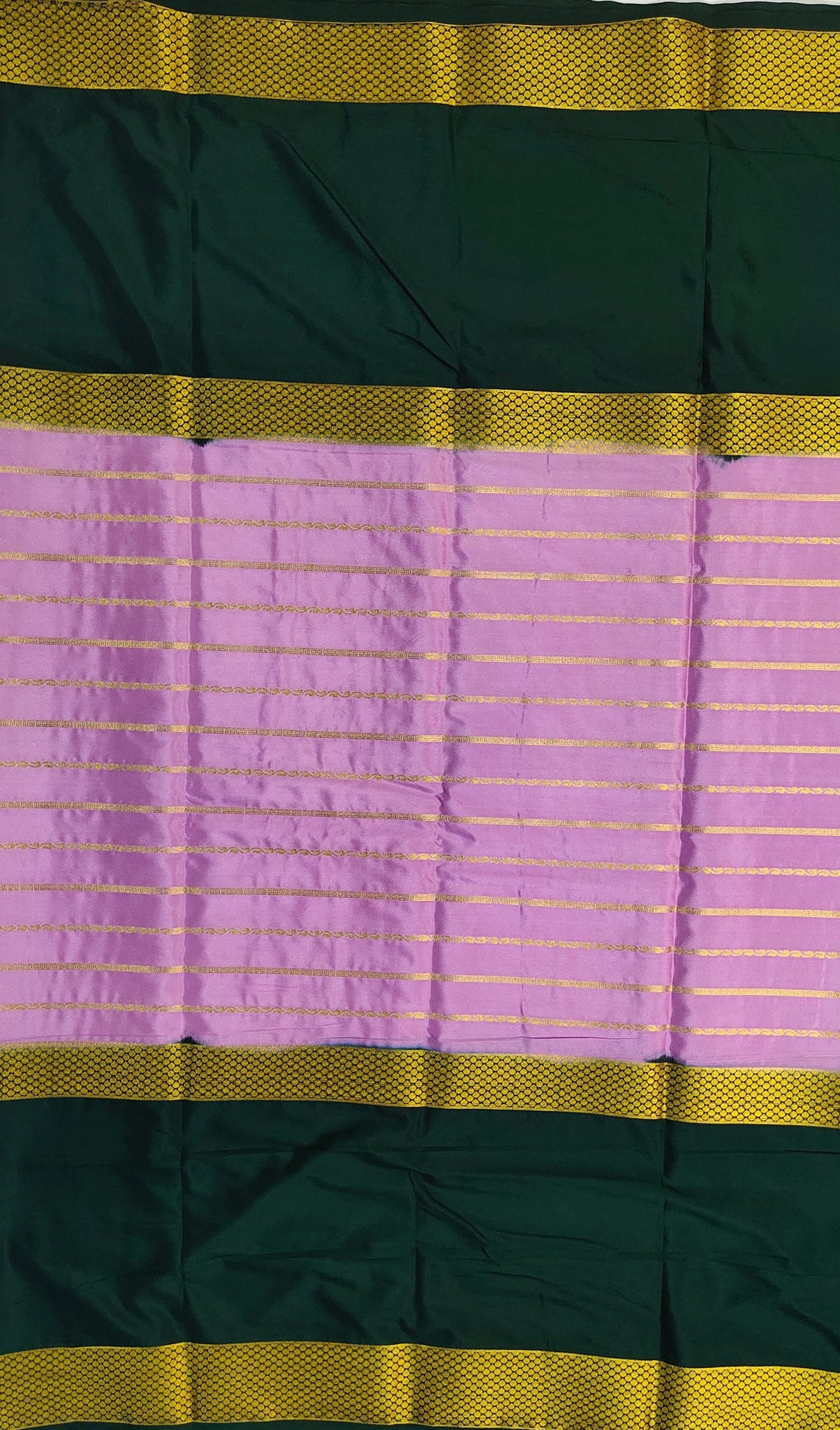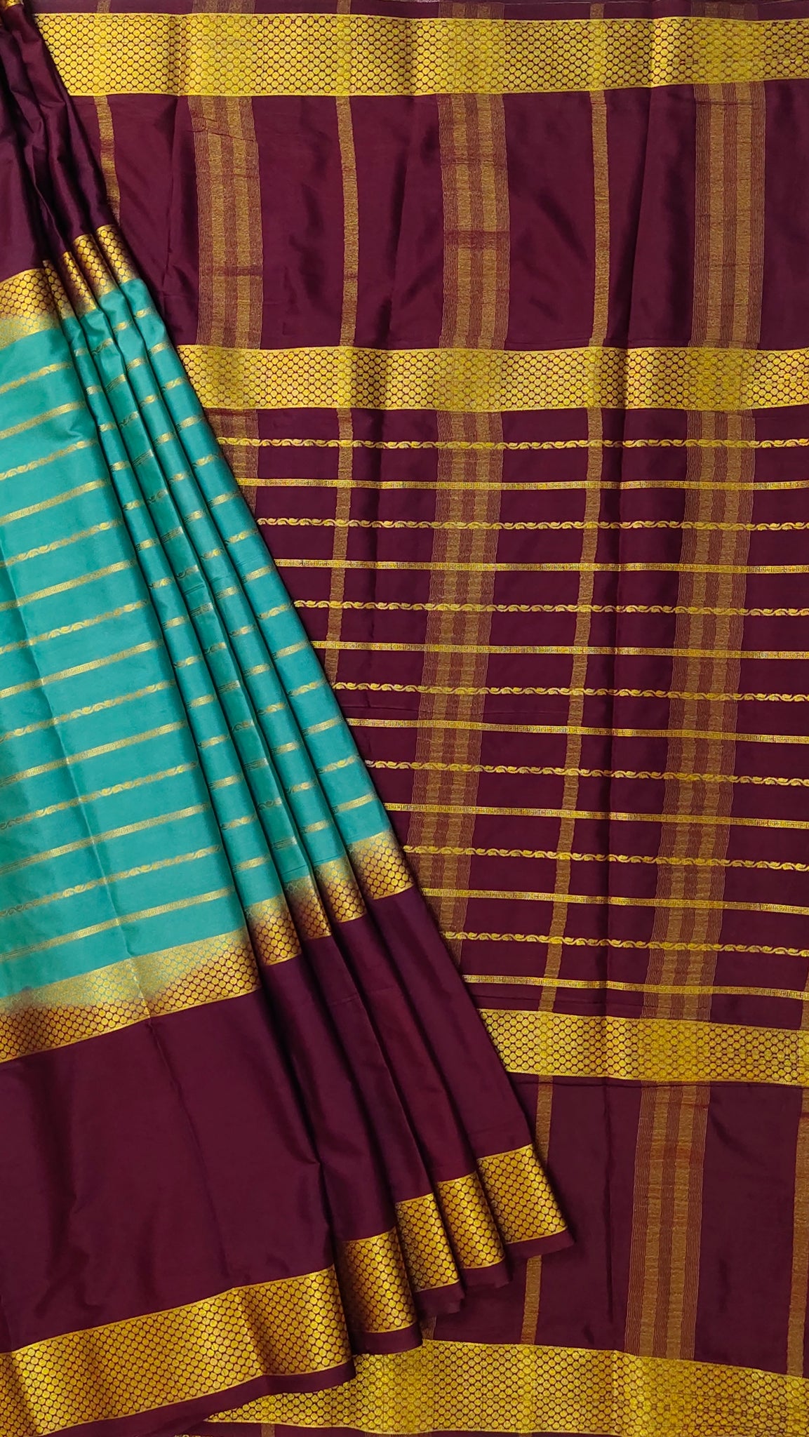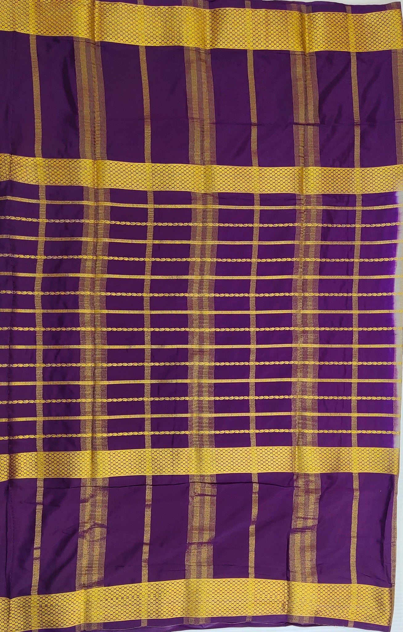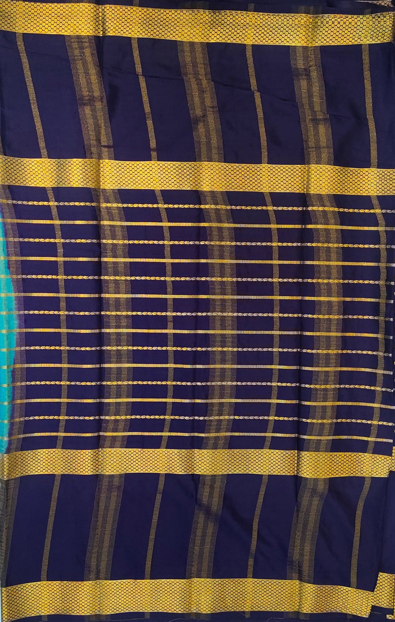 Indulge in the timeless elegance of our semi mysuru crepe Saree. Adorned with a contrasting border and blouse, this saree features a stunning striped body that exudes sophistication. Its luxurious fabric and intricate design will make you the center of attention at any event. Elevate your style with this exclusive piece.