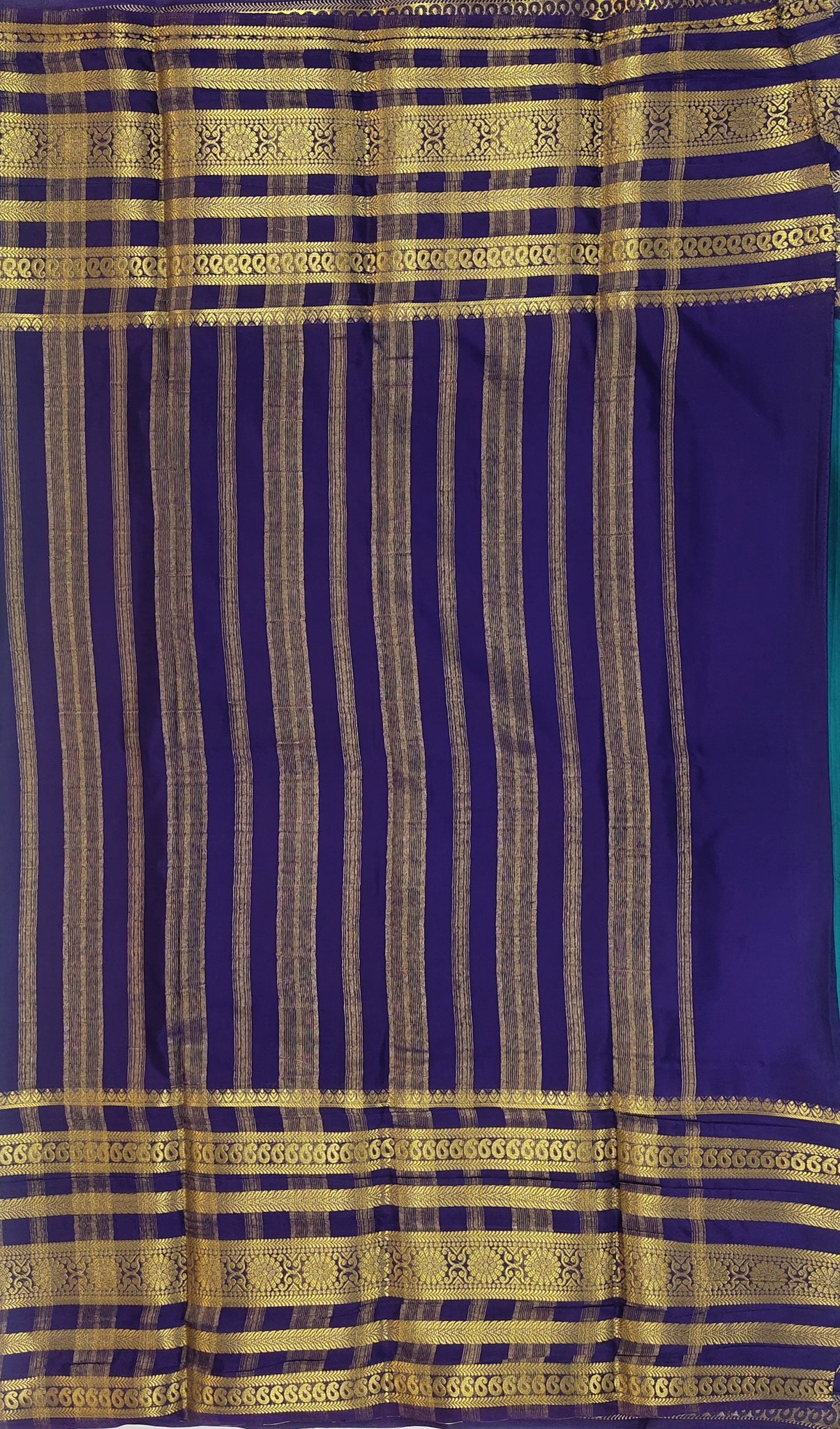 Elevate your elegance with this Semi Mysuru Crepe Saree, artfully designed with a contrasting border, pallu, and blouse. The smooth crepe fabric drapes gracefully, offering a refined silhouette perfect for formal occasions. Its sophisticated contrast details add a subtle yet striking touch, making it an ideal choice for those who appreciate timeless style with a modern twist.