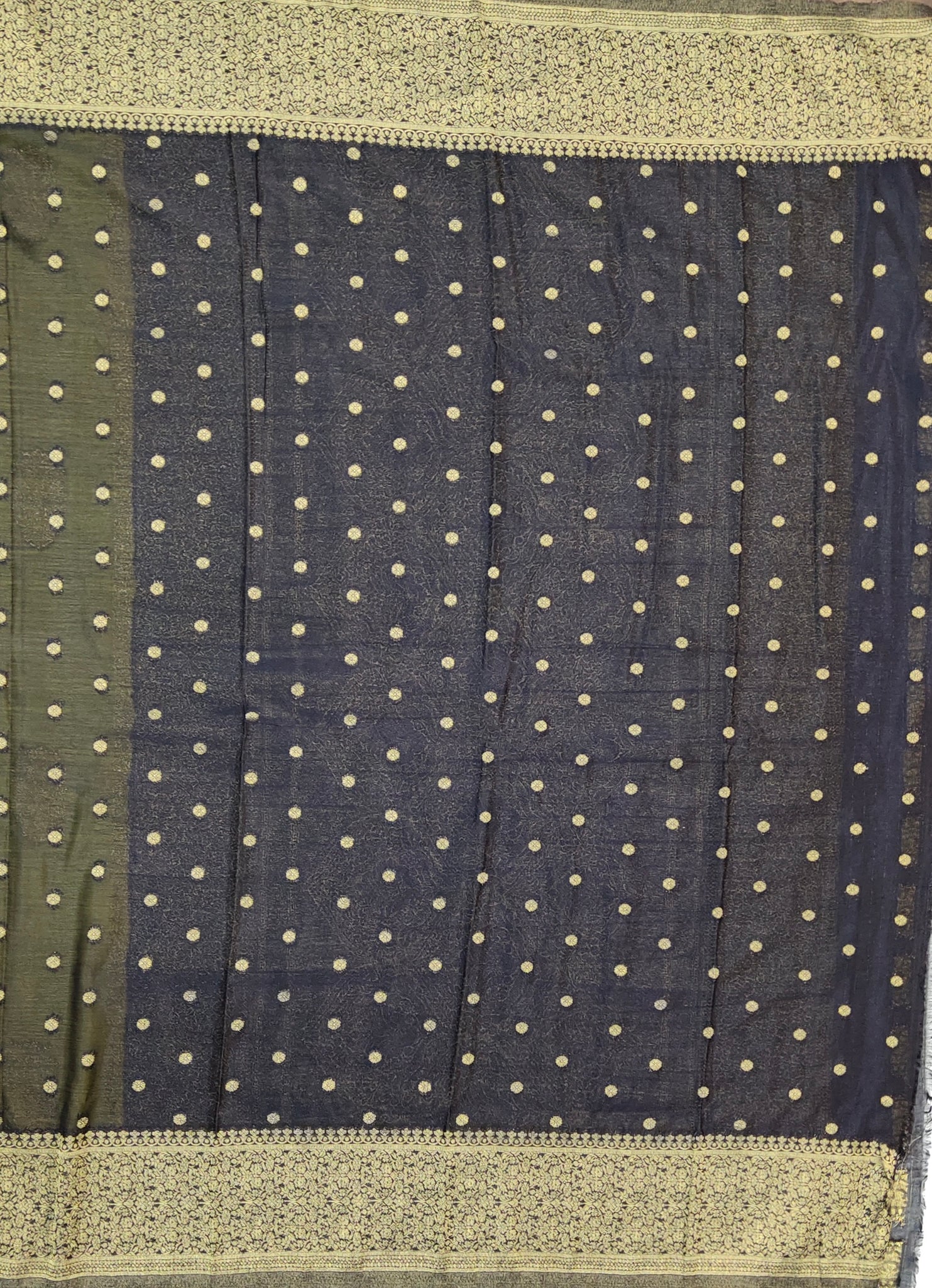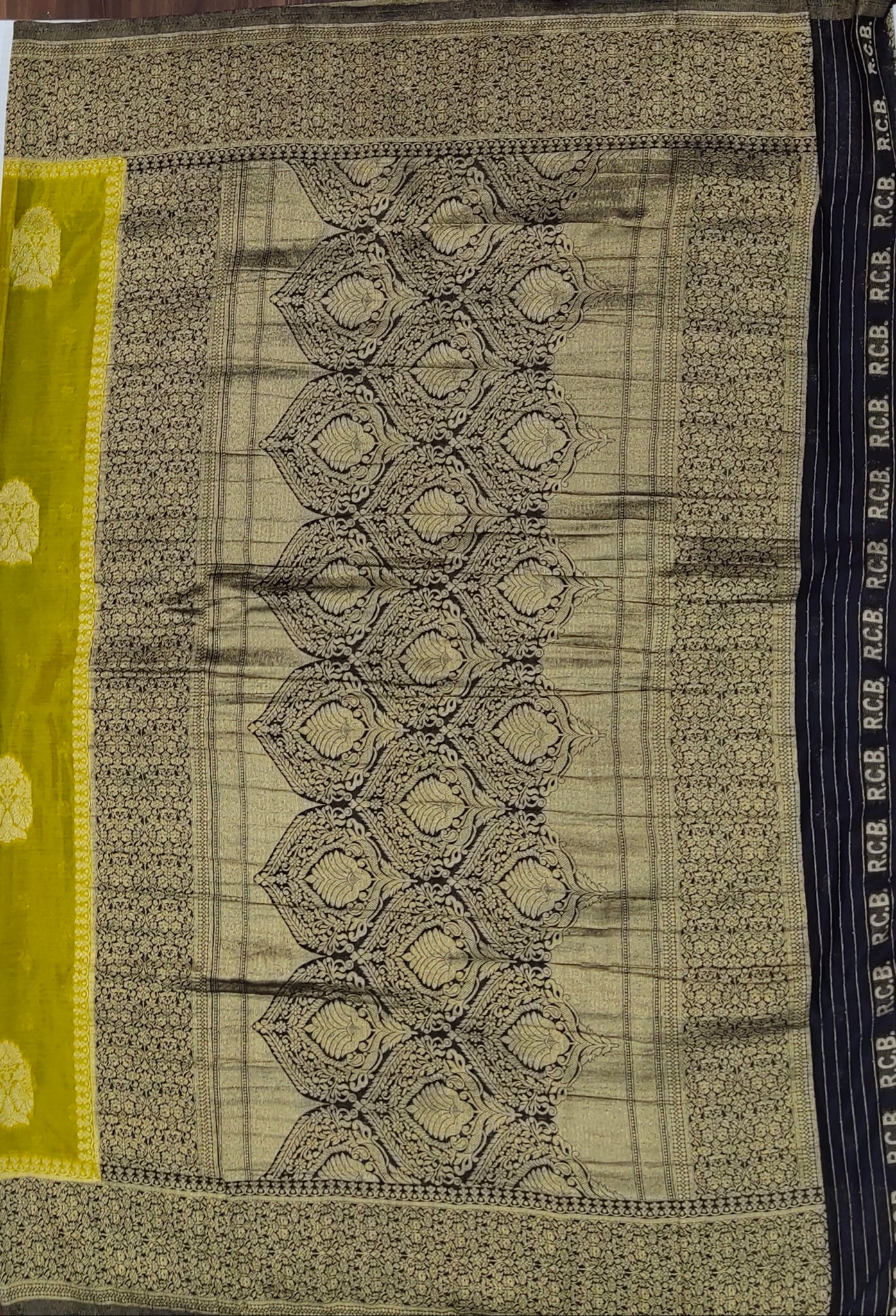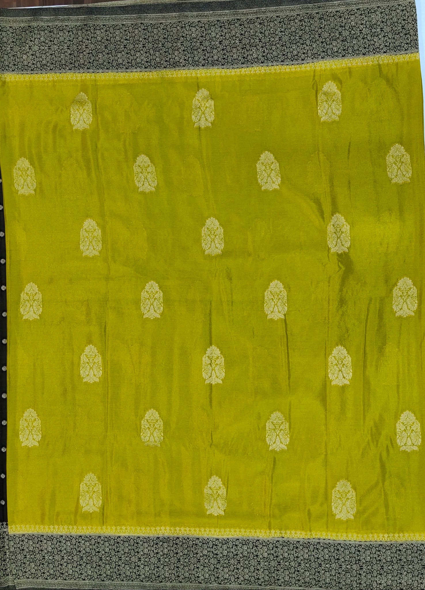 Banaras Chinnon Crepe Saree with Contrast Border,Pallu and Blouse.