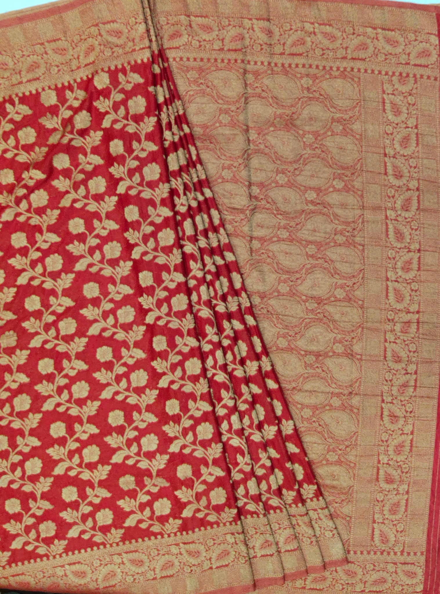 Banaras Chinnon Crepe Saree with Self Colored Border,Pallu and Blouse.
